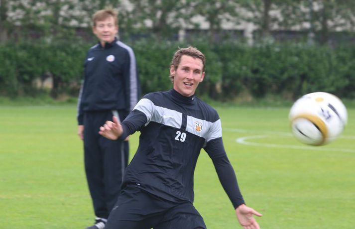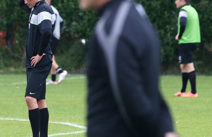 Gary Martin mætti á sína fyrstu æfingu með KR | Myndir Kolbeinn Tumi Daðason skrifar 19. júlí 2012 19:51 Martin hlýðir á fyrirmæli Rúnars Kristinssonar í Vesturbænum í dag. Mynd/Valli Knattspyrnukappinn Gary Martin mætti á sína fyrstu æfingu hjá Íslands- og bikarmeisturum KR síðdegis í dag. Martin hefur skrifað undir þriggja og hálfs árs samning við liðið. Félagaskipti Englendingsins hafa vakið töluverða athygli enda Martin ekki farið leynt með áhuga sinn á að komast frá Akranesi og í herbúðir KR-inga sem nú er raunin. Valgarður Gíslason, ljósmyndari Fréttablaðsins og Vísis, leit við á æfingu hjá KR og tók þessar myndir. KR-ingar mæta Stjörnunni í toppslag í Pepsi-deildar karla í Garðabænum á laugardaginn klukkan 16. Pepsi Max-deild karla Tengdar fréttir ÍA og KR hafa samið um kaupverð á Gary Martin Sóknarmaður Skagamanna Gary Martin nálgast KR eftir að félögin náðu samkomulagi um kaupverð á Martin í gærkvöldi. Þetta staðfesti Kristinn Kærnested formaður knattspyrnudeildar KR við íþróttadeild Stöðvar 2 í morgun. 19. júlí 2012 12:15 Gary Martin samdi við KR til 2015 | KR-ingar opnir fyrir Lennon Englendingurinn Gary Martin skrifaði í dag undir þriggja og hálfs árs samning við KR. Martin, sem spilað hefur með ÍA undanfarin tvö ár, mætti á sína fyrstu æfingu með Vesturbæjarliðinu í dag. 19. júlí 2012 17:58 Mest lesið Lætur drauminn rætast og opnar kínverskan veitingastað Sport Fyrirliðinn áreitti dómara og mátti ekki spila lokaleikinn Fótbolti „Hann sér framtíðina fyrir sér hjá Napoli“ Fótbolti Sjáðu allt það besta úr enska boltanum á árinu 2025 Enski boltinn Fílabeinsstrendingar tryggðu toppsætið í uppbótartíma Fótbolti „Feginn að þú lifðir krabbameinið af svo þú gætir séð skítaliðið þitt fara niður“ Handbolti „Ég mun ekki keppa við Rússa á meðan stríð er í gangi“ Sport Mbappé þurfti að játa sig sigraðan Fótbolti Alveg sama um úrvalsdeildina og ætlar í veiði eftir HM Sport Réttlætti Zirkzee-skiptinguna: „Stundum sækirðu betur með færri framherja“ Enski boltinn Fleiri fréttir „Mér var bara tjáð að þeir ætluðu að leita eitthvað annað“ Enn kvarnast úr liði Blika Leið Víkings að titlinum rifjuð upp í kvöld Þjálfar 2. flokk samhliða því að spila fyrir KR Færeysk landsliðskona til liðs við ÍBV Býst ekki við að spila aftur fyrir landsliðið Kynntu Sigurð á slaginu sex á aðfangadag Heyrði hvorki frá Blikum né Víkingum Úr Bestu heim í Hauka „Þetta er stærsti klúbbur Íslands“ Sagan ekki sönn: „Veit ekki hvaðan þetta á að hafa komið“ Meira en 37 stöðugildi hjá Knattspyrnusambandi Íslands Óskar Hrafn um komu Arnórs Ingva: „Gífurlega dýrmætt fyrir KR“ Arnór Ingvi orðinn leikmaður KR Breiðablik kaupir Jónatan frá Norrköping Elías mættur til meistaranna KR sagt vera að landa Arnóri Ingva Hilmar Árni til starfa hjá KR Segir fjórðung í bók Óla ósannan Víkingur í úrslit Bose-bikarsins eftir sigur „Verið heiður að spila í appelsínugulu með frábærum liðsfélögum“ Þekkir Egilshöllina vel og skoraði gegn fyrrum félögum Strákar Heimis Guðjóns fengu slæman skell í fyrsta leik Axel verður áfram hjá Aftureldingu Kveður pabba sinn í Laugardalnum og fer til FH „Félag sem var í basli með að ná endum saman og greiða laun á réttum tíma“ Skrýtið og taktlaust: „Ég er ekkert sátt með niðurstöðuna“ Fanndís kveður sviðið: „Ég er búin að fella nokkur tár“ Gylfi með tvö og Víkingar byrja á sigri Frá Akureyri til Danmerkur Sjá meira