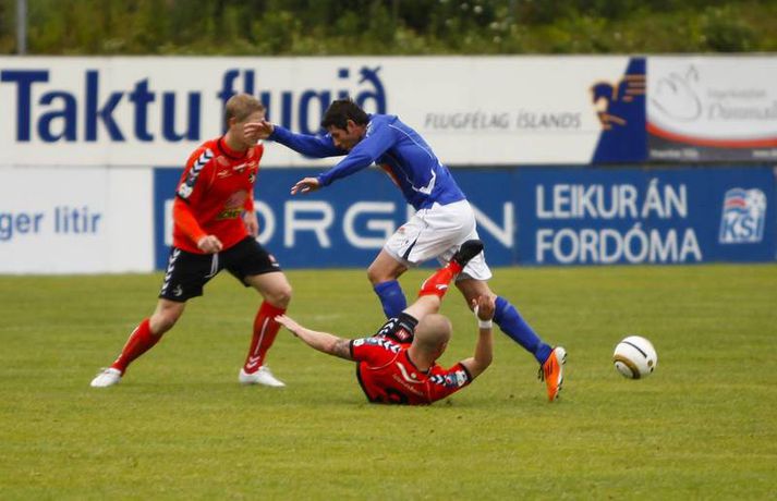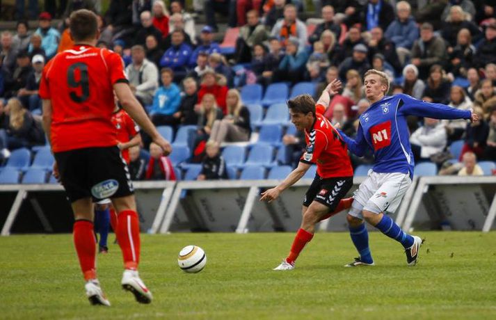 Fylkir og Stjarnan gerðu 3-3 jafntefli á Fylkisvelli í Árbæ í kvöld þegar liðin mættust í 13. umferð Pepsi-deildar karla. Stjörnumenn komust þrisvar yfir í leiknum en Fylkismenn jöfnuðu í öll skiptin. Ingimundur Níels Óskarsson tryggði Fylki að lokum stig með jöfnunarmarki átta mínútum fyrir leikslok. Stjörnumenn áttu möguleika á að komast upp að hlið KR-inga á toppnum en öll þessi jafntefli eru farin að verða liðin dýrkeypt í toppbaráttu deildarinnar. Ernir Eyjólfsson, ljósmyndari Fréttablaðsins og Vísis, var á leik Fylkis og Stjörnunnar í kvöld og náði þessum skemmtilegu myndum. Myndirnar má sjá í albúminu hér að neðan. Hægt er að sjá myndirnar stærri með því að smella á þær.