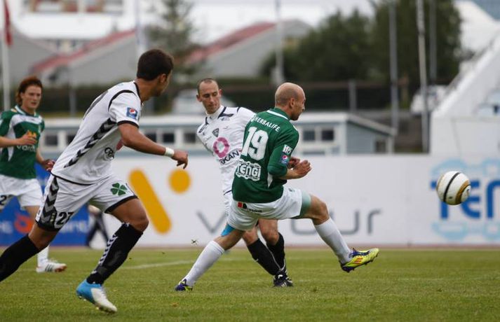 Nýi Daninn hjá Blikum stöðvaði sigurgöngu Eyjamanna í fyrsta leik - myndir Óskar Ófeigur Jónsson skrifar 29. júlí 2012 22:03 Mynd/Ernir Nichlas Rohde, nýr leikmaður Breiðabliks, var hetja liðsins í sínum fyrsta leik í dag þegar hann skoraði eina markið í 1-0 sigri á ÍBV. Eyjamenn voru búnir að vinna sex deildarleiki í röð fyrir leikinn. Rohde átti mjög góðan leik og skoraði sigurmarkið sitt á 35. mínútu leiksins. Þetta var langþráður sigur hjá Blikum sem voru ekki búnir að fagna sigri í fjórum síðustu deildarleikjum sínum eða frá því að þeir unnu Íslandsmeistara KR 20. júní. Ernir Eyjólfsson, ljósmyndari Fréttablaðsins og Vísis, var á leik Breiðabliks og ÍBV á Kópavogsvellinum í dag og náði þessum skemmtilegu myndum. Myndirnar má sjá í albúminu hér að neðan. Hægt er að sjá myndirnar stærri með því að smella á þær. Pepsi Max-deild karla Mest lesið Giftu sig á gamlársdag Handbolti Hvað á Liverpool að gera með Mo Salah og Alexander Isak? Enski boltinn Fjölskylda skíðakappans fær ekki svör fyrr en í mars Sport Lætur drauminn rætast og opnar kínverskan veitingastað Sport Dagskráin í dag: Stórleikir í enska boltanum og átta manna úrslit í pílunni Sport Slá því upp að Maresca gæti verið rekinn frá Chelsea í dag Enski boltinn Fyrirliðinn áreitti dómara og mátti ekki spila lokaleikinn Fótbolti „Hann sér framtíðina fyrir sér hjá Napoli“ Fótbolti „Ég mun ekki keppa við Rússa á meðan stríð er í gangi“ Sport Fílabeinsstrendingar tryggðu toppsætið í uppbótartíma Fótbolti Fleiri fréttir „Mér var bara tjáð að þeir ætluðu að leita eitthvað annað“ Enn kvarnast úr liði Blika Leið Víkings að titlinum rifjuð upp í kvöld Þjálfar 2. flokk samhliða því að spila fyrir KR Færeysk landsliðskona til liðs við ÍBV Býst ekki við að spila aftur fyrir landsliðið Kynntu Sigurð á slaginu sex á aðfangadag Heyrði hvorki frá Blikum né Víkingum Úr Bestu heim í Hauka „Þetta er stærsti klúbbur Íslands“ Sagan ekki sönn: „Veit ekki hvaðan þetta á að hafa komið“ Meira en 37 stöðugildi hjá Knattspyrnusambandi Íslands Óskar Hrafn um komu Arnórs Ingva: „Gífurlega dýrmætt fyrir KR“ Arnór Ingvi orðinn leikmaður KR Breiðablik kaupir Jónatan frá Norrköping Elías mættur til meistaranna KR sagt vera að landa Arnóri Ingva Hilmar Árni til starfa hjá KR Segir fjórðung í bók Óla ósannan Víkingur í úrslit Bose-bikarsins eftir sigur „Verið heiður að spila í appelsínugulu með frábærum liðsfélögum“ Þekkir Egilshöllina vel og skoraði gegn fyrrum félögum Strákar Heimis Guðjóns fengu slæman skell í fyrsta leik Axel verður áfram hjá Aftureldingu Kveður pabba sinn í Laugardalnum og fer til FH „Félag sem var í basli með að ná endum saman og greiða laun á réttum tíma“ Skrýtið og taktlaust: „Ég er ekkert sátt með niðurstöðuna“ Fanndís kveður sviðið: „Ég er búin að fella nokkur tár“ Gylfi með tvö og Víkingar byrja á sigri Frá Akureyri til Danmerkur Sjá meira