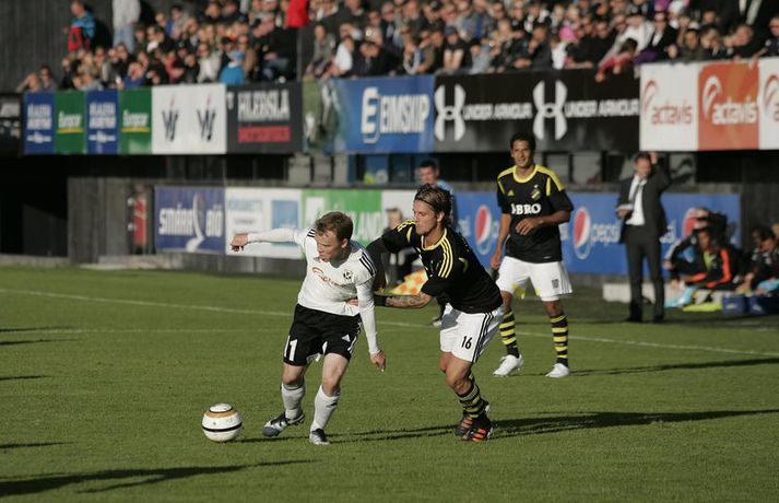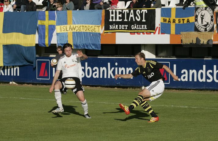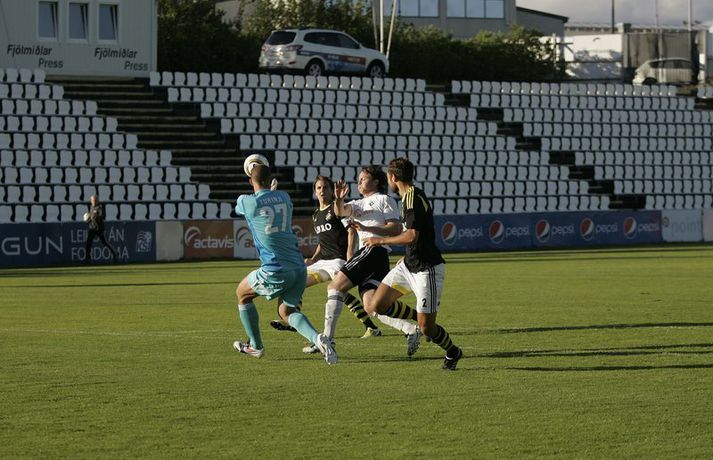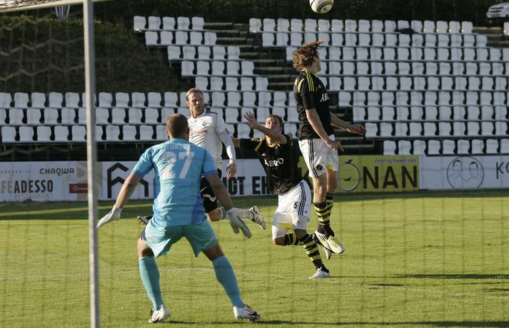FH-ingum tókst ekki að nýta sér góð úrslit úr fyrri leik sínum á móti sænska liðinu AIK og eru úr leik í Evrópudeildinni eftir 0-1 tap á móti sænska liðinu á Kaplakrikavelli í kvöld. FH náði 1-1 jafntefli í Svíþjóð og nægði því markalaust jafntefli. Helgi Valur Daníelsson og félagar í AIK eru þar með komnir áfram í 3. umferð keppninnar en það var klaufamark fimm mínútum fyrir hálfleik sem réði úrslitunum í einvíginu. Daníel Rúnarsson, ljósmyndari Fréttablaðsins og Vísis, var á leik FH og AIK á Kaplakrikavellinum í kvöld og náði þessum skemmtilegu myndum. Myndirnar má sjá í albúminu hér að neðan. Hægt er að sjá myndirnar stærri með því að smella á þær.Mynd/Daníel