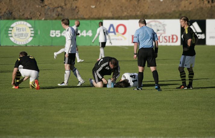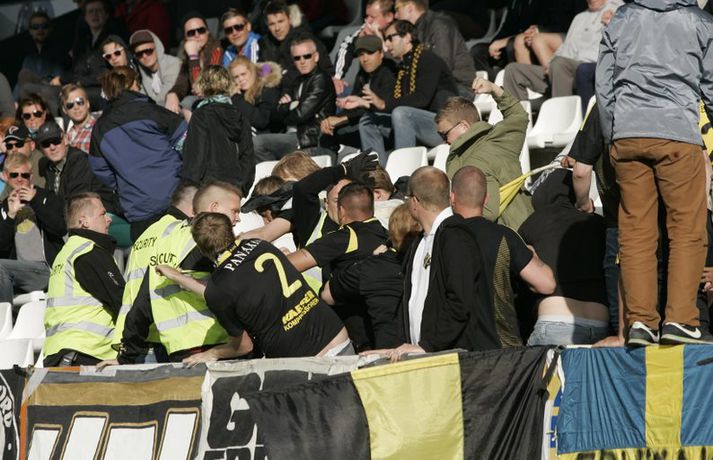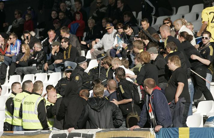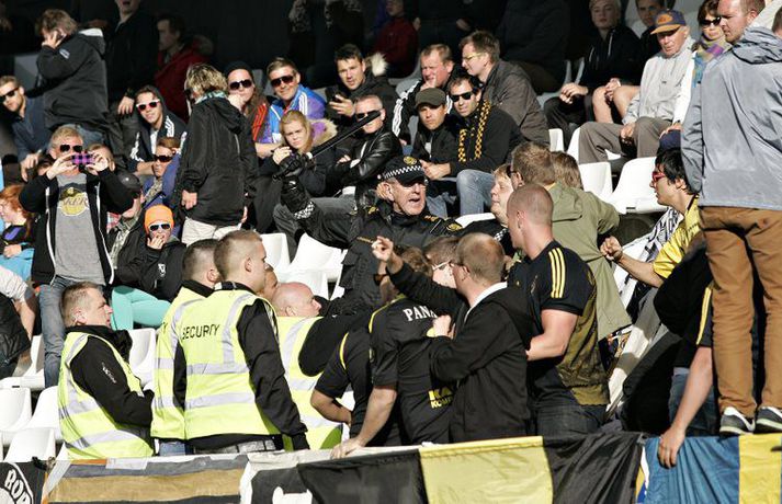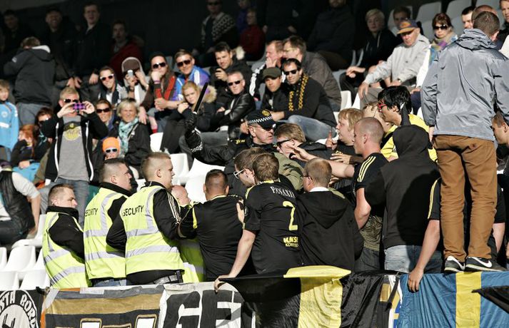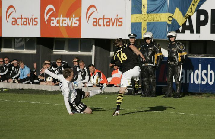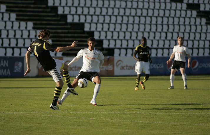 Aðeins einn Íslendingur fagnaði í Krikanum í kvöld - myndir Óskar Ófeigur Jónsson skrifar 26. júlí 2012 22:15 Mynd/Daníel FH-ingum tókst ekki að nýta sér góð úrslit úr fyrri leik sínum á móti sænska liðinu AIK og eru úr leik í Evrópudeildinni eftir 0-1 tap á móti sænska liðinu á Kaplakrikavelli í kvöld. FH náði 1-1 jafntefli í Svíþjóð og nægði því markalaust jafntefli. Helgi Valur Daníelsson og félagar í AIK eru þar með komnir áfram í 3. umferð keppninnar en það var klaufamark fimm mínútum fyrir hálfleik sem réði úrslitunum í einvíginu. Daníel Rúnarsson, ljósmyndari Fréttablaðsins og Vísis, var á leik FH og AIK á Kaplakrikavellinum í kvöld og náði þessum skemmtilegu myndum. Myndirnar má sjá í albúminu hér að neðan. Hægt er að sjá myndirnar stærri með því að smella á þær.Mynd/Daníel Evrópudeild UEFA Íslenski boltinn Mest lesið Hetja Englands á EM sleit krossband Enski boltinn „Búnir að sýna hvað við getum verið lélegir“ Körfubolti Lofar frekari fjárfestingum Enski boltinn Sádar eru ekki að fara að byggja HM-leikvang ofan á skýjakljúfi Fótbolti Haukur Helgi: Höfum ekki verið að spila góðan körfubolta Körfubolti Skortir Liverpool breidd þrátt fyrir gríðarleg fjárútlát síðasta sumar? Enski boltinn Uppgjörið: Þýskaland - Ísland 42-31 | Þrot í Þýskalandi Handbolti „Getum verið fjandi góðir“ Körfubolti Dagskráin í dag: Meistararnir á Króknum, Körfuboltakvöld og allskonar Sport Uppgjörið: Valur - Grindavík 55-90 | Taplausir Grindvíkingar kjöldrógu Val Körfubolti Fleiri fréttir Sádar eru ekki að fara að byggja HM-leikvang ofan á skýjakljúfi Hetja Englands á EM sleit krossband Lofar frekari fjárfestingum Juventus ræður Spalletti út tímabilið Meistaradeildin skiptir um bjór og Heineken snýr sér að padel Aron Einar kominn á toppinn Tölur úr Bestu: Hallgrímur Mar bjó til langflest færi Fantasýn: „Þessi vörn er eitthvað skrímsli“ Scholes hættir og setur einhverfan son sinn í fyrsta sætið Rúmar tvær milljónir í boði ef þú finnur hundinn hans Aarons Ramsey Carrick í einkaviðtali: Sigurinn á Anfield stór stund fyrir Man. Utd Hefur spilað 16 mínútur og fengið tvö rauð spjöld Bættu Evrópumet AC Milan liðsins með Gullit og Van Basten innanborðs Slot: Engin auka pressa við þetta tap Real Madrid vill stórar skaðabætur frá UEFA „Mjög sáttur með samninginn“ „Hefði séð eftir því alla ævi“ Magnús Már í viðræðum við HK Bað alla nema þjálfarann afsökunar Vísar slúðrinu til föðurhúsanna Ísak Bergmann lagði upp gegn Bayern „Við tókum bara þá ákvörðun að fara í Svanavatnið“ Albert og Mikael Egill í vondum málum á Ítalíu Palace neitar að sleppa takinu á Liverpool „Eitthvað sem ég mun aldrei gleyma“ Einkunnir Íslands: Þrjár heitastar í frostinu Viktor Bjarki skoraði og lagði upp í fyrsta byrjunarliðsleiknum Uppgjörið: Ísland - Norður-Írland 3-0 | Áfram hluti af elítunni Pedri gæti verið frá keppni til langs tíma Arteta fyrstur stjóranna á fætur Sjá meira