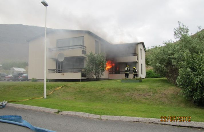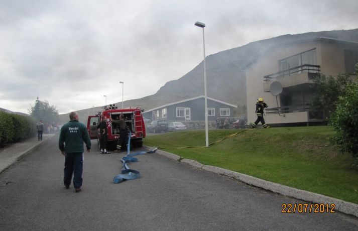 Bærinn eins og ein stór fjölskylda eftir bruna Boði Logason skrifar 23. júlí 2012 20:19 Frá eldsvoðanum í gærkvöldi. Myndirnar tók Herborg Hulda Símonardóttir „Þau bera sig bara vel en fengu náttúrulega sjokk þegar þetta gerðist. Núna eru þau búin að átta sig á þessu. Auðvitað eru þau skelkuð og önnur fjölskyldan búin að missa allt," segir Pálína Hermannsdóttir hjá Rauða Krossinum í Vestur Barðastrandarsýslu, en samtökin hafa aðstoðað fjölskyldu á Tálknafirði í kjölfar eldsvoða sem varð í fjölbýlishúsi í bænum í gærkvöldi. Að sögn Pálínu felst aðstoðin meðal annars í því að útvega fólkinu föt, hreinlætisvörur og aðrar nauðsynjar auk þess að veita þeim sálrænan stuðning. „Það er mikil samkennd í gangi. Fólk er duglegt að koma til okkar áhöldum, fatnaði og sængurfötum, svo eitthvað sé nefnt. Það eru allir boðnir og búnir og tilbúnir að rétta fram hjálparhönd. Þegar svona áfall verður þá verður bærinn bara eins og ein stór fjölskylda. Strax í gærkvöldi kom ótrúlegasta fólk til okkar og vildu hjálpa til. Við erum einnig búin að bjóða fjölskyldunum að koma í fatasöfnunina okkar á morgun," segir hún. Í húsinu eru fjórar íbúðir og var fólk í þremur þeirra þegar eldurinn kom upp. Íbúð og innbú fjögurra manna fjölskyldu fór verst í brunanum og missti hún nær allt sitt. Sú fjölskylda og önnur fjögurra manna fjölskylda hafa fengið húsaskjól annarsvegar hjá vinafólki og hins vegar hjá atvinnuveitenda annarrar fjölskyldunnar. Ungur maður sem var í þriðju íbúðinni fékk húsaskjól á heimili foreldra sinna í bænum. Allar íbúðirnar voru rýmdar vegna brunans í gærkvöldi og er unnið að því að reykræsta húsið. Sjálfboðaliðar Rauða krossins á Tálknafirði brugðust við strax og ljóst var um brunann í gærkvöldi og hófu aðstoð við það fólk sem býr í húsinu. Sjálfboðaliðar Rauða krossins munu veita fólkinu áframhaldandi aðstoð í vikunni, hitta þolendur og veita þeim ráðgjöf og stuðning. Mest lesið Afleiðingarnar af systkinabroti séu verri en brotið sjálft Innlent Föst í Herjólfi í korter eftir langa ferð frá Eyjum Innlent Stór skálfti í Japan og flóðbylgjuviðvörun gefin út Erlent Faðirinn skaut sjö börn sín til bana og eitt til viðbótar Erlent Stjórnvöld í Tehran sögð orðin afhuga samningaviðræðum Erlent Skýringar manns sem vildi „endurvekja þýsku sturturnar“ héldu ekki vatni Innlent Sagðist ætla að kveikja í hundi áður en hann rændi gull- og demantsmunum Innlent „Hver hefur reynslu af því að byrla eiginkonu sinni?“ Innlent Vinstrið eygir þrjá borgarfulltrúa og sjálfstæðismenn þann sjöunda Innlent Bandamaður Rússa vann stórsigur í Búlgaríu Erlent Fleiri fréttir Öll tólf mánaða börn fá leiksskólapláss í Kópavogi Vilja að fullorðnir lofi að búa til rými þar sem börn geta sagt frá Vinstrið eygir þrjá borgarfulltrúa og sjálfstæðismenn þann sjöunda Bein útsending: Samtal um atvinnustefnu og aðgerðir í þágu verðmætasköpunar Afleiðingarnar af systkinabroti séu verri en brotið sjálft Sagðist ætla að kveikja í hundi áður en hann rændi gull- og demantsmunum Föst í Herjólfi í korter eftir langa ferð frá Eyjum Skýringar manns sem vildi „endurvekja þýsku sturturnar“ héldu ekki vatni Nánast hreint kókaín í umferð en ekkert fentanyl Ofsaakstur um allt höfuðborgarsvæðið Nám Hildar sé merkilegra en menntunarfræði leikskóla „Ég sé engin rök fyrir því“ „Það er bara frekar slæmt ástand“ Inga sendir boltann á sveitarfélögin „Hver hefur reynslu af því að byrla eiginkonu sinni?“ Vill verja hundruðum milljóna í þegar dýrt leikskólakerfi „Eitthvað það tilgerðarlegasta og hallærislegasta sem ég hef séð“ Þúsundir karla byrla eiginkonum sínum og nauðga Inga of upptekin til að funda: „Við höfum ekki fjármagn, engan stuðning“ „Lóa í Víðum“ sveitarstjóraefnið Aðildar- eða aðlögunarviðræður, djúptækni og tekist á í borginni Innbrot í kirkju og slagsmál í strætisvagni Flugvél lenti á hvolfi í Mosfellsbæ Grunaður í tengslum við eld á heimili eiginkonu sinnar Rifjaði upp hvernig það var að vera ung stelpa með leyndarmál vegna ummæla Snorra Sinueldur við Vík í Mýrdal Frambjóðendur Miðflokksins keppast um að fagna fjölbreytileikanum „Það hafa ekki verið neinir hnökrar hjá okkur“ „Þessi uppsögn snerist um eitthvað miklu stærra heldur en einn mann“ Áreitt í sturtuklefa Sundhallarinnar í tvígang: „Stend þarna bara náföl og hágrátandi“ Sjá meira