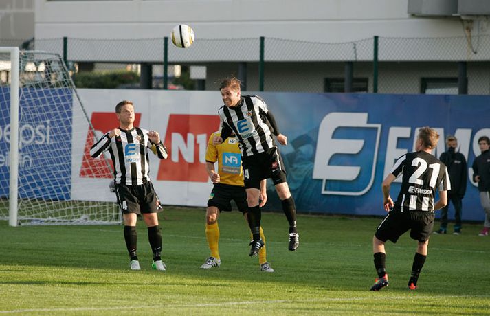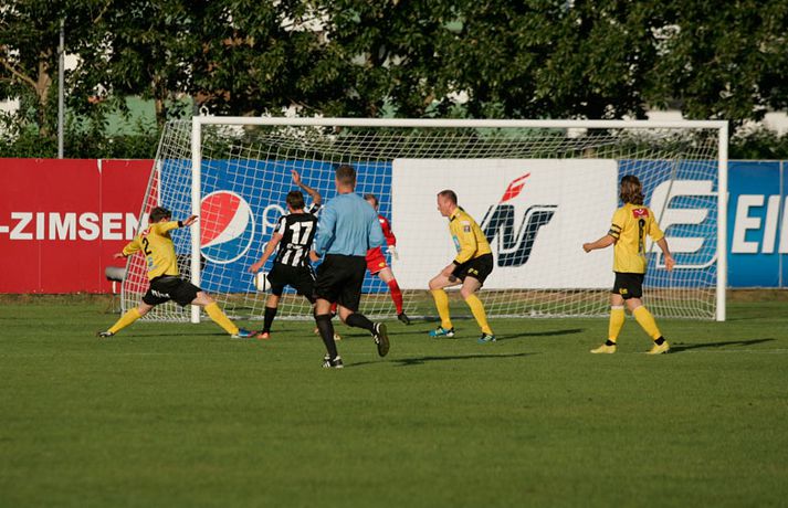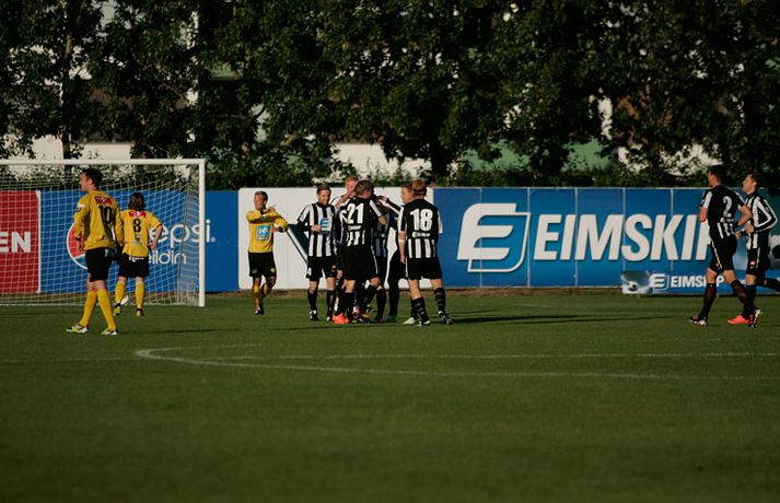 KR vann sannfærandi 2-0 sigur á ÍA í viðureign liðanna í Vesturbæ Reykjavíkur í kvöld. Enginn lék betur en Gary Martin sem fór á kostum gegn sínum gömlu félögum. Óskar Örn Hauksson kom KR-ingum yfir strax á 6. mínútu eftir fallegan einleik. Kjartan Henry Finnbogason tryggði sigurinn á 31. mínútu eftir flottan undirbúning Gary Martin. Daníel Rúnarsson, ljósmyndari Fréttablaðsins og Vísis, leit við í Vesturbænum í kvöld og náði þessum myndum.