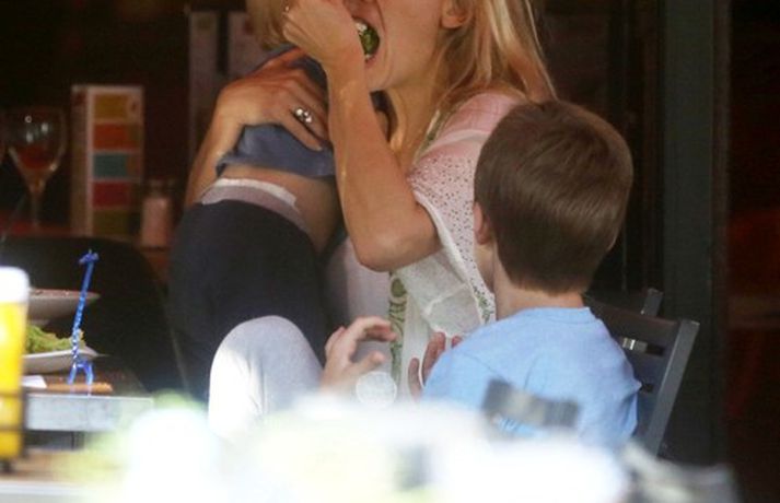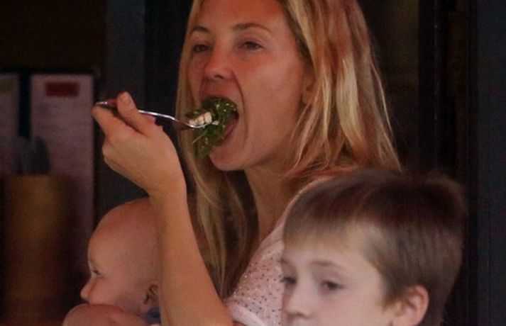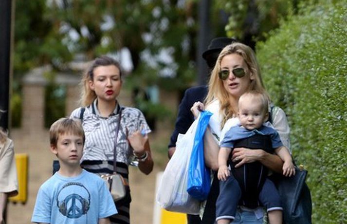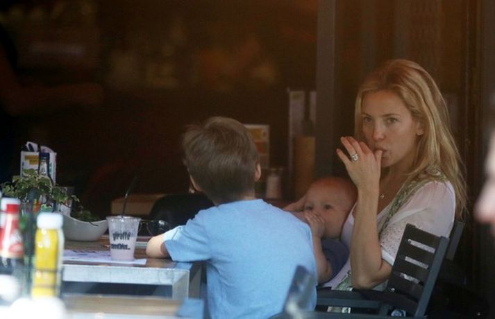 Leikkonan Kate Hudson var elt af æstum ljósmyndurum á meðan hún gerði heiðarlega tilraun til að eiga venjulegan dag með sonum sínum tveimur. Kate bar þann yngri í poka framan á maganum á meðan sá eldri rölti með henni um göturnar og naut dagsins. Lá leið þeirra í léttan hádegisverð og því næst í hverfisbúðina þar sem þau keyptu inn í ískápinn. Þrátt fyrir friðleysið virtist Kate mjög afslöppuð að sjá eins og sjá má í meðfylgjandi myndasafni.Myndir/COVERMEDIA