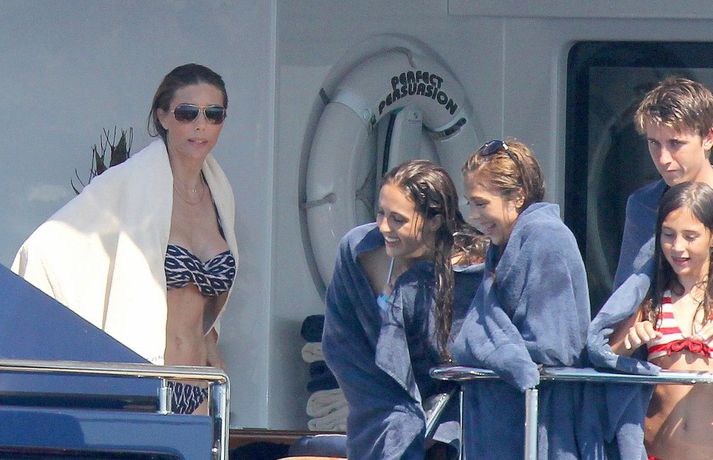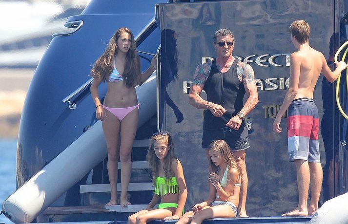 Sylvester Stallone, 66 ára, er staddur í Cannes í Frakklandi ásamt fjölskyldu sinni á lúxussnekkju eins og sjá má á myndunum í myndasafni. Eiginkona hans Jennifer Flavin og börnin þeirra Sophia, Sistine og Scarlet njóta lífsins um borð snekkjunnar en syrgja á sama tíma bróður sinn, Sage Stallone, sem fannst látinn aðeins 36 ára að aldri eftir banvænan skammt af fíkniefnum í júlí.myndir/cover media