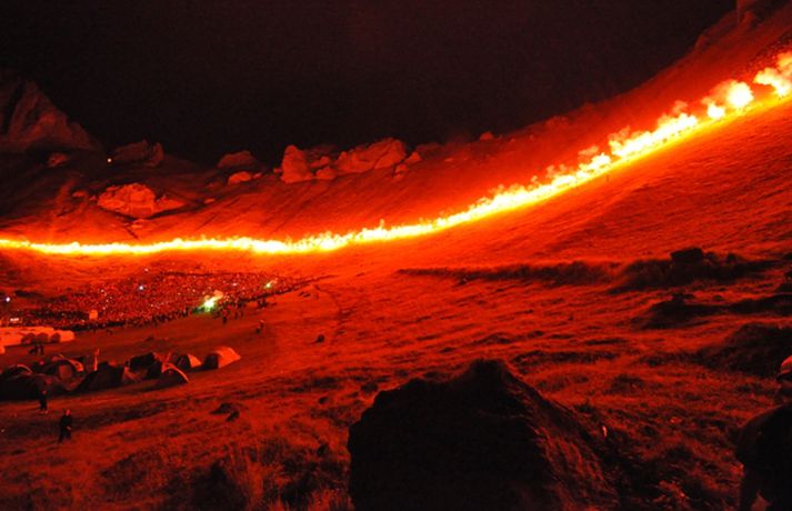 Mikil stemming var á Þjóðhátíð í gær en þá var síðasta kvöld hátíðarinnar sem staðið hefur yfir síðan á föstudag. Fjölmargir listamenn komu fram þar á meðal stórstjarnan Ronan Keating, Botnleðja og Árni Johnsen söng brekkusönginn fyrir viðstadda. Að því loknu var kveikt á 138 rauðum blysum, eitt fyrir hvert ár sem Þjóðhátíð hefur verið haldin. Svo var sungið Lífið er yndislegt sem ómaði um alla eyjuna enda 15 þúsund manns sem tóku undir. Okkar maður í Eyjum, Óskar P. Friðriksson, var með myndavélina á lofti og myndaði það sem fyrir augu bar. Hægt er að skoða myndirnar hér til hliðar.