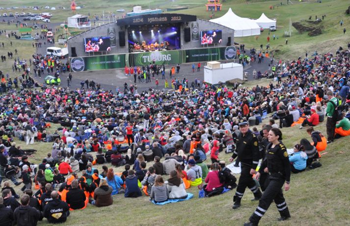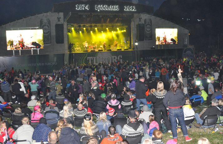 Mikið stuð var í Vestmannaeyjum í gær enda var flugeldasýning í Herjólfsdal og fjölmargir tónlistarmenn tóku lagið. Okkar maður Óskar P. Friðriksson var að sjálfsögðu með myndavélina á lofti allan daginn og kvöldið og tók myndir af því sem fyrir augu bar. Í myndaalbúminu má sjá enga aðra en Björgvin Halldórsson og Helga Björns taka lagið. Það gerist ekki mikið svalara.myndir/Óskar P. Friðriksson