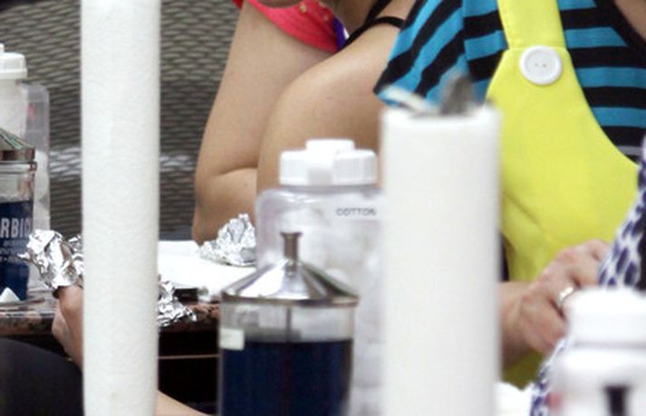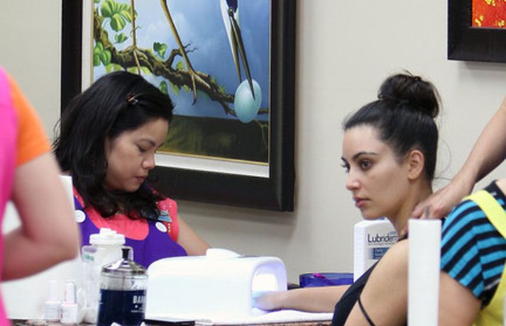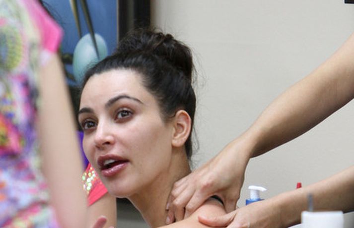 Raunveruleikastjarnan Kim Kardashian var mynduð í bak og fyrir er hún skrapp í dekur á dögunum. Kim fór í hand og fótsnyrtingu og axlarnudd og naut þess vel þrátt fyrir alla athyglina sem hún fékk á snyrtistofunni. Eins og sjá má á meðfylgjandi myndum var stjarnan óförðuð og klædd þægilegum íþróttafatnaði.