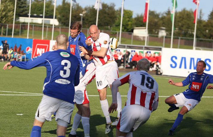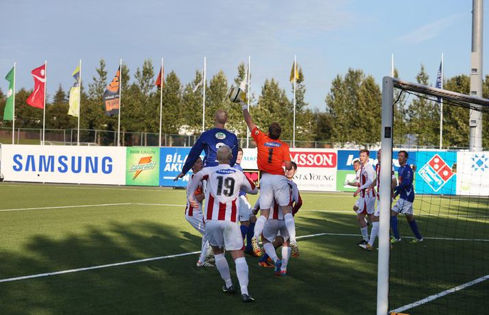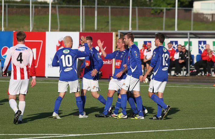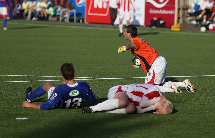 Söguleg stund þegar Stjarnan tryggði sér sæti í bikarúrslitum | Myndir 1. ágúst 2012 23:00 Stjörnumenn fagna fyrra marki Mark Doninger. Mynd/Daníel Karlalið Stjörnunnar tryggði sér í kvöld sæti í úrslitum Borgunarbikars karla eftir 3-0 sigur á Þrótti í Garðabæ. Þetta er í fyrsta sinn sem Stjarnan kemst í úrslit keppninnar. Englendingurinn Mark Doninger skoraði tvívegis af stuttu færi og Daninn Alexander Scholz þriðja markið í leik þar sem stuðningsmenn beggja liða stóðu sig ekki síður en leikmennirnir. Daníel Rúnarsson, ljósmyndari Fréttablaðsins og Vísis, leit við á Samsung-vellinum í kvöld og tók þessar myndir. Pepsi Max-deild karla Tengdar fréttir Umfjöllun og viðtöl: Stjarnan - Þróttur 3-0 | Stjarnan í bikarúrslit Stjarnan mun leika til úrslita í Borgunar-bikarnum í fyrsta sinn eftir góðan 3-0 sigur á Þrótti í undanúrslitum á Samsung-vellinum í kvöld. Stjarnan vann fyllilega verðskuldaðan sigur og var hreinlega einu númeri of stórir fyrir 1. deildar lið Þróttar R. sem barðist þó vel og hefði með smá heppni getað komið sér inn í leikinn. 1. ágúst 2012 14:11 Mest lesið Giftu sig á gamlársdag Handbolti Hvað á Liverpool að gera með Mo Salah og Alexander Isak? Enski boltinn Chelsea búið að reka Enzo Maresca Enski boltinn Dæmd úr leik vegna skósóla Sport Slá því upp að Maresca gæti verið rekinn frá Chelsea í dag Enski boltinn Dagskráin í dag: Stórleikir í enska boltanum og átta manna úrslit í pílunni Sport Fjölskylda skíðakappans fær ekki svör fyrr en í mars Sport Varar íþróttafólk við ákveðinni tegund áfengis Sport Lætur drauminn rætast og opnar kínverskan veitingastað Sport Fyrirliðinn áreitti dómara og mátti ekki spila lokaleikinn Fótbolti Fleiri fréttir „Mér var bara tjáð að þeir ætluðu að leita eitthvað annað“ Enn kvarnast úr liði Blika Leið Víkings að titlinum rifjuð upp í kvöld Þjálfar 2. flokk samhliða því að spila fyrir KR Færeysk landsliðskona til liðs við ÍBV Býst ekki við að spila aftur fyrir landsliðið Kynntu Sigurð á slaginu sex á aðfangadag Heyrði hvorki frá Blikum né Víkingum Úr Bestu heim í Hauka „Þetta er stærsti klúbbur Íslands“ Sagan ekki sönn: „Veit ekki hvaðan þetta á að hafa komið“ Meira en 37 stöðugildi hjá Knattspyrnusambandi Íslands Óskar Hrafn um komu Arnórs Ingva: „Gífurlega dýrmætt fyrir KR“ Arnór Ingvi orðinn leikmaður KR Breiðablik kaupir Jónatan frá Norrköping Elías mættur til meistaranna KR sagt vera að landa Arnóri Ingva Hilmar Árni til starfa hjá KR Segir fjórðung í bók Óla ósannan Víkingur í úrslit Bose-bikarsins eftir sigur „Verið heiður að spila í appelsínugulu með frábærum liðsfélögum“ Þekkir Egilshöllina vel og skoraði gegn fyrrum félögum Strákar Heimis Guðjóns fengu slæman skell í fyrsta leik Axel verður áfram hjá Aftureldingu Kveður pabba sinn í Laugardalnum og fer til FH „Félag sem var í basli með að ná endum saman og greiða laun á réttum tíma“ Skrýtið og taktlaust: „Ég er ekkert sátt með niðurstöðuna“ Fanndís kveður sviðið: „Ég er búin að fella nokkur tár“ Gylfi með tvö og Víkingar byrja á sigri Frá Akureyri til Danmerkur Sjá meira