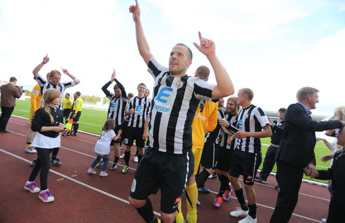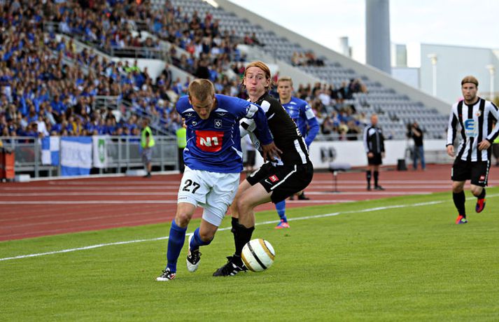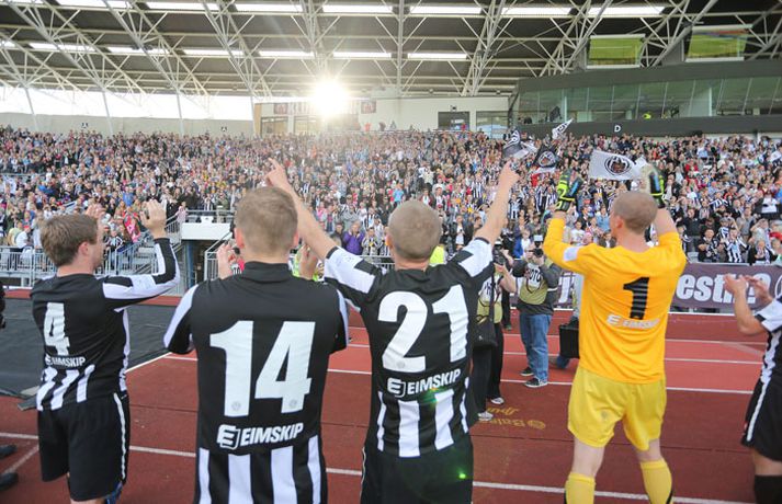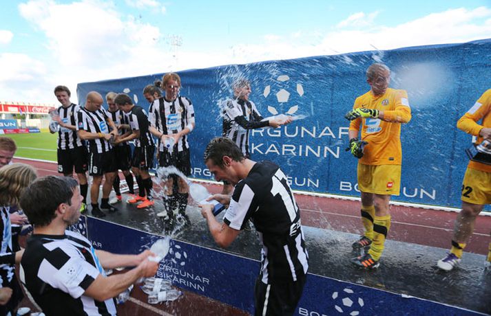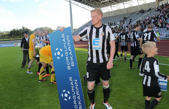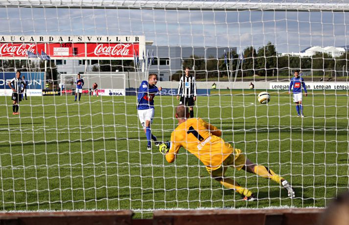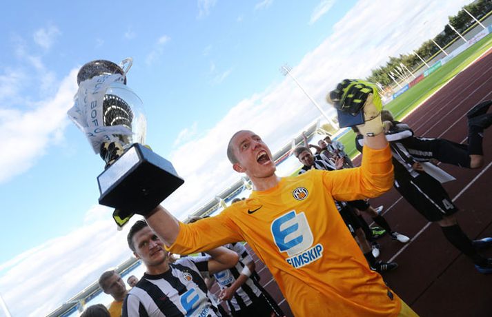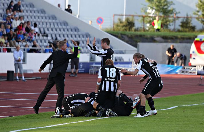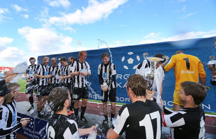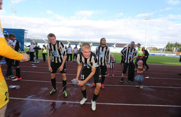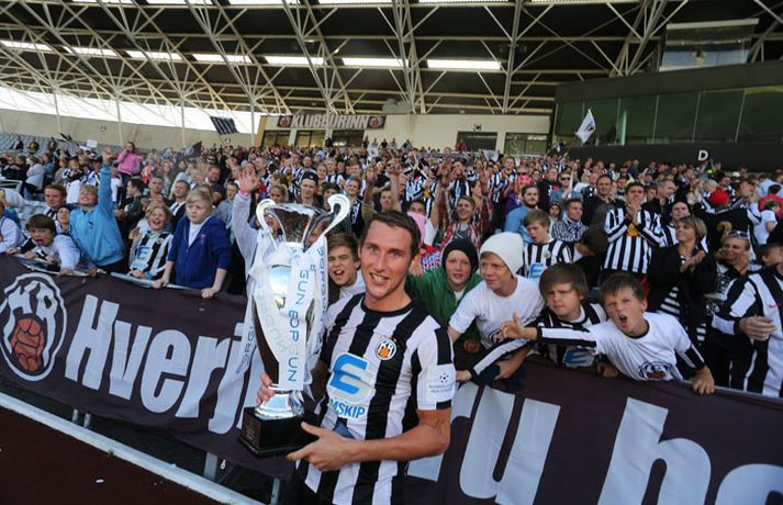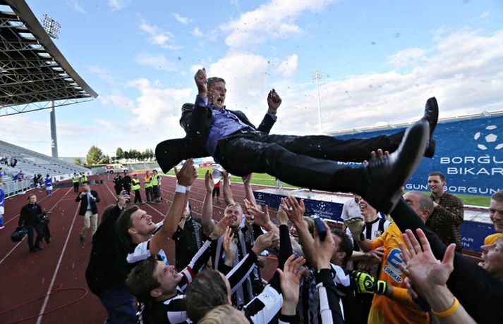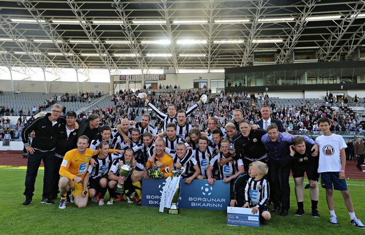 KR varð bikarmeistari karla annað árið í röð í dag og í þrettánda skiptið í sögu félagsins. Það var Baldur Sigurðsson sem tryggði liðinu sigur með glæsilegu skallamarki. Mikil stemning var á vellinum og leikurinn sjálfur frábær skemmtun. Daníel Rúnarsson, ljósmyndari Fréttablaðsins og Vísis, var á vellinum og myndaði leikinn sem og fögnuð KR-inga. Myndirnar má sjá í albúminu hér að neðan.