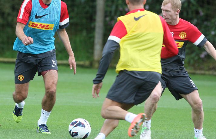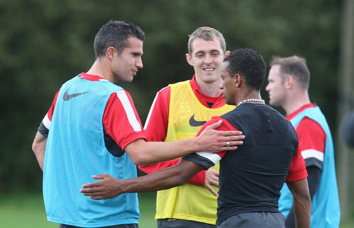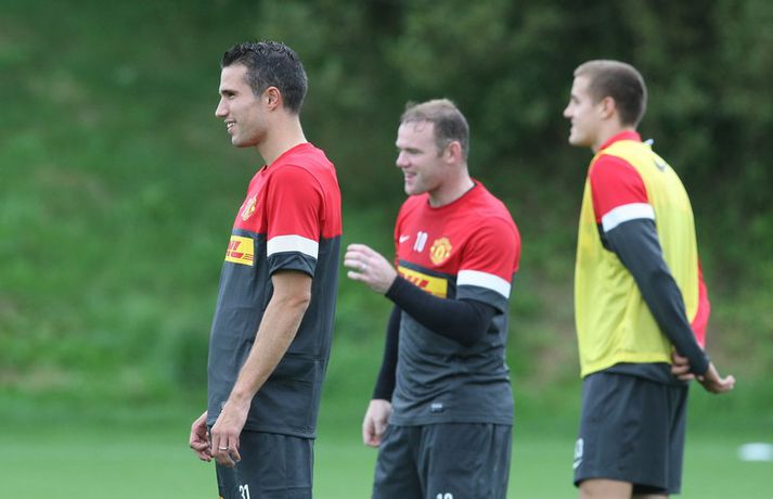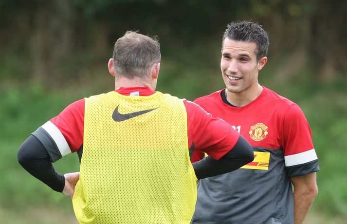 Robin van Persie var formlega kynntur sem leikmaður Manchester United í dag en hann skrifaði þá undir fjögurra ára samning, æfði með liðinu í fyrsta sinn og sat síðan fyrir svörum á blaðamannafundi ásamt stjóranum Sir Alex Ferguson. Robin van Persie fær treyju númer 20 hjá Manchester United en hann gæti spilað sinn fyrsta leik á mánudaginn þegar United mætir Everton í fyrstu umferð ensku úrvalsdeildarinnar. Ljósmyndarar Getty og AFP voru staddir í Manchester í dag og fylgdust með komu hollenska framherjans. Við höfum tekið saman myndasyrpu með deginum hjá Van Persie. Myndirnar má sjá í albúminu hér að neðan. Hægt er að sjá myndirnar stærri með því að smella á þær.