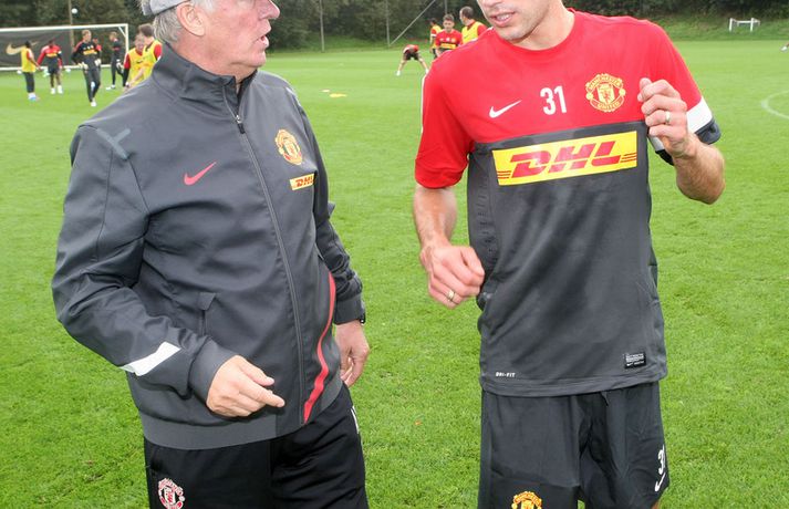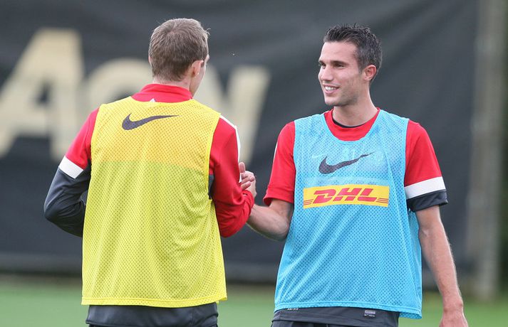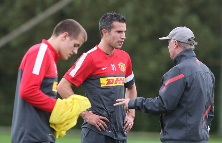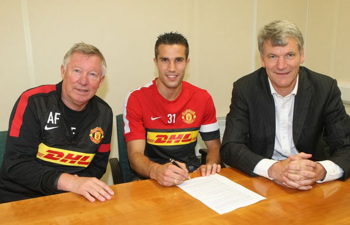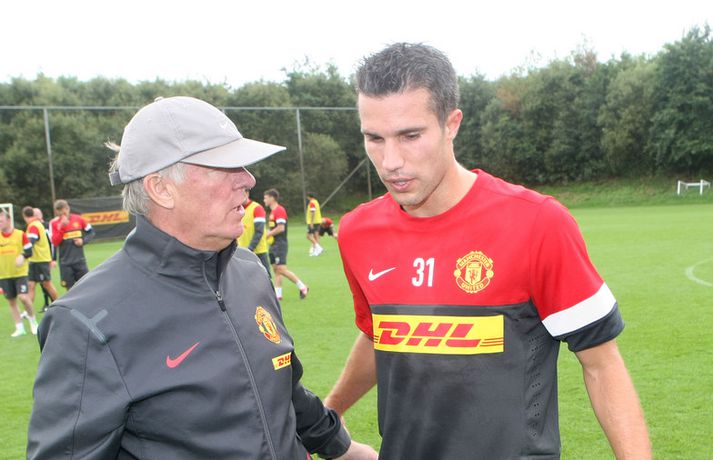 Van Persie verður númer 20 - myndir frá komu hans á Old Trafford Óskar Ófeigur Jónsson skrifar 17. ágúst 2012 16:30 Robin van Persie og Sir Alex Ferguson. Mynd/Nordic Photos/Getty Robin van Persie var formlega kynntur sem leikmaður Manchester United í dag en hann skrifaði þá undir fjögurra ára samning, æfði með liðinu í fyrsta sinn og sat síðan fyrir svörum á blaðamannafundi ásamt stjóranum Sir Alex Ferguson. Robin van Persie fær treyju númer 20 hjá Manchester United en hann gæti spilað sinn fyrsta leik á mánudaginn þegar United mætir Everton í fyrstu umferð ensku úrvalsdeildarinnar. Ljósmyndarar Getty og AFP voru staddir í Manchester í dag og fylgdust með komu hollenska framherjans. Við höfum tekið saman myndasyrpu með deginum hjá Van Persie. Myndirnar má sjá í albúminu hér að neðan. Hægt er að sjá myndirnar stærri með því að smella á þær. Mest lesið Arnar Daði rekinn frá Stjörnunni en áfram þjálfari kvennaliðsins Handbolti Koepka fyrsta stjarnan sem riftir samningi við LIV Golf Ótrúlegur sigur á HM: „Ég er mjög tregur svo pressan nær ekki til mín“ Sport „Þetta er stærsti klúbbur Íslands“ Íslenski boltinn Þessi tíu eru tilnefnd sem Íþróttamaður ársins 2025: 23 ára aldursmunur Sport Man. Utd reyndi stíft en Semenyo kaus City Enski boltinn Sagan ekki sönn: „Veit ekki hvaðan þetta á að hafa komið“ Íslenski boltinn Stefndi á ÓL en fannst látinn á hótelherbergi Sport Öll höllin æpti nafn Gísla í spennutrylli Handbolti Ekkert spilað í vetur en gæti mætt Íslandi í fyrsta leik á EM Handbolti Fleiri fréttir Arsenal í undanúrslit eftir vító Man. Utd reyndi stíft en Semenyo kaus City „Tölfræðilega séð eiga þeir ekkert að vera í þessari stöðu“ Chelsea setur sig í samband við Semenyo Jiménez jafnaði bestu vítaskyttu sögunnar Slot mun sakna Isak í tvo mánuði eftir „glórulausa tæklingu“ Sjáðu „auma“ vítið sem skilaði Fulham sigri Fulham skildi Forest eftir við fallsvæðið Áfallið staðreynd og Isak búinn í aðgerð Fagnaði titli Liverpool sem óður maður um alla borg „Allir virðast elska hann“ „Þetta mun ekki buga okkur“ Guardiola mun vigta leikmenn Man City eftir jólin „Ef þið væruð Antoine Semenyo, hvert mynduð þið fara?“ Sjáðu mörkin: Rogers sá um Manchester United Óttast að Isak hafi fótbrotnað Tvenna frá Rogers tryggði Villa sigur gegn Manchester United Fimmta sinn sem Arsenal er á toppnum um jólin: Unnu ekki titilinn í fyrstu fjögur skiptin „Viljum við að okkar verði minnst fyrir að vera skræfur?“ „Ef dómarinn hefði sinnt sínu starfi almennilega hefði Romero ekki fengið spjald“ Haaland gaf barnabarni Hareide gjöf Sjáðu mörkin úr enska: Sviptingar, sænskt þema og svakalegar tæklingar Calvert-Lewin hættir ekki að skora Gyökeres skaut Arsenal aftur á toppinn Slot fámáll um stöðuna á Isak Gleði og sorg í sigri Liverpool Dramatík er Broja reyndist hetja Burnley Haaland frábær er Manchester City komst á toppinn Andri Lucas skoraði í langþráðum sigri Blackburn Chelsea vann upp tveggja marka forskot á St James' Park Sjá meira
