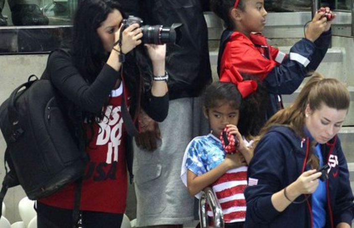 Ástralski Ólympíuvinningshafinn í sundi Stephanie Rice, 24 ára, neitar því staðfastlega að eitthvað meira sé á milli hennar og bandaríska körfuboltamannsins Kobe Bryant, 33 ára en hrein og tær vinátta. Stephanie og körfuboltakappinn sem á tvær dætur með Vanessu eiginkonu sinni til tíu ára eru parið sem allir eru að tala um í Ólympíuþorpinu í London því þau sjást oft saman og það fer ekki fram hjá nokkrum einasta manni að þeim líður vel í návist hvors annars. Í vikunni skemmtu þau sér saman í áhorfendastúkunni eins og sjá má í myndasafninu en eiginkona Koby var hvergi sjáanleg. Síðar sama dag mætti Stephanie í stuttu leðurpilsi og hvarf síðar ásamt Kobe og viti menn það var þá sem slúðursagan fór af stað eins og eldur í sinu. Geta strákar og stelpur ekki verið vinir? spurði sunddrottning á Twitter síðunni sinni eftir að hún setti myndina af sér með Kobe á síðuna í vikunni en það var þá sem aðdáendur hennar spurðu hvort þau væru bara vinir. Í myndasafni má einnig sjá Koby með eiginkonu sinni og dætrum fylgjast með leikunum.