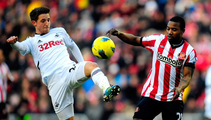 Rodgers: Allen á leið til Liverpool Eiríkur Stefán Ásgeirsson skrifar 10. ágúst 2012 10:30 Allen, til vinstri, í leik með Swansae. Nordic Photos / Getty Images Brendan Rodgers, stjóri Liverpool, staðfesti í gærkvöldi að Joe Allen væri á leið til félagsins frá Swansea. Allen er 22 ára miðvallarleikmaður og var hann í stúkunni þegar að Liverpool vann 3-0 sigur á FC Gomel í forkeppni Evrópudeildar UEFA í gærkvöldi. „Það er stutt í þetta. Vonandi verður hægt að gang frá þessu á næsta sólarhing," sagði Rodgers eftir leikinn í gær. Talið er að Allen muni gangast undir læknisskoðun í dag og skrifa undir samning að henni lokinni. Rodgers var áður stjóri Swansea og þekkir því vel til Allen. Viðræður hófust á milli félaganna í síðasta mánuði og var fyrsta tilboði Liverpool hafnað. En nú er útlit fyrir að félögin hafi náð saman. Mest lesið Arnar Daði rekinn frá Stjörnunni en áfram þjálfari kvennaliðsins Handbolti Koepka fyrsta stjarnan sem riftir samningi við LIV Golf Ótrúlegur sigur á HM: „Ég er mjög tregur svo pressan nær ekki til mín“ Sport „Þetta er stærsti klúbbur Íslands“ Íslenski boltinn Man. Utd reyndi stíft en Semenyo kaus City Enski boltinn Sagan ekki sönn: „Veit ekki hvaðan þetta á að hafa komið“ Íslenski boltinn Öll höllin æpti nafn Gísla í spennutrylli Handbolti Þessi tíu eru tilnefnd sem Íþróttamaður ársins 2025: 23 ára aldursmunur Sport Arsenal í undanúrslit eftir vító Enski boltinn Stefndi á ÓL en fannst látinn á hótelherbergi Sport Fleiri fréttir Arsenal í undanúrslit eftir vító Man. Utd reyndi stíft en Semenyo kaus City „Tölfræðilega séð eiga þeir ekkert að vera í þessari stöðu“ Chelsea setur sig í samband við Semenyo Jiménez jafnaði bestu vítaskyttu sögunnar Slot mun sakna Isak í tvo mánuði eftir „glórulausa tæklingu“ Sjáðu „auma“ vítið sem skilaði Fulham sigri Fulham skildi Forest eftir við fallsvæðið Áfallið staðreynd og Isak búinn í aðgerð Fagnaði titli Liverpool sem óður maður um alla borg „Allir virðast elska hann“ „Þetta mun ekki buga okkur“ Guardiola mun vigta leikmenn Man City eftir jólin „Ef þið væruð Antoine Semenyo, hvert mynduð þið fara?“ Sjáðu mörkin: Rogers sá um Manchester United Óttast að Isak hafi fótbrotnað Tvenna frá Rogers tryggði Villa sigur gegn Manchester United Fimmta sinn sem Arsenal er á toppnum um jólin: Unnu ekki titilinn í fyrstu fjögur skiptin „Viljum við að okkar verði minnst fyrir að vera skræfur?“ „Ef dómarinn hefði sinnt sínu starfi almennilega hefði Romero ekki fengið spjald“ Haaland gaf barnabarni Hareide gjöf Sjáðu mörkin úr enska: Sviptingar, sænskt þema og svakalegar tæklingar Calvert-Lewin hættir ekki að skora Gyökeres skaut Arsenal aftur á toppinn Slot fámáll um stöðuna á Isak Gleði og sorg í sigri Liverpool Dramatík er Broja reyndist hetja Burnley Haaland frábær er Manchester City komst á toppinn Andri Lucas skoraði í langþráðum sigri Blackburn Chelsea vann upp tveggja marka forskot á St James' Park Sjá meira