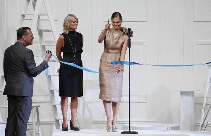 Viktoría krónprinsessa Svía opnaði tískusýningu Fadi El Khoury S/S 2013 á Mercedes-Benz Stockholm tískuvikunni í gær. Prinsessan var stórglæsileg í hnésíðum satínkjól með rómantíska greiðslu í hári. Á meðfylgjandi myndum má sjá brot af tískusýningunni sem var með einstaklega fallegu og skemmtilegu sniði sem og prinsessuna klippa á borðann og brosa til ljósmyndara.