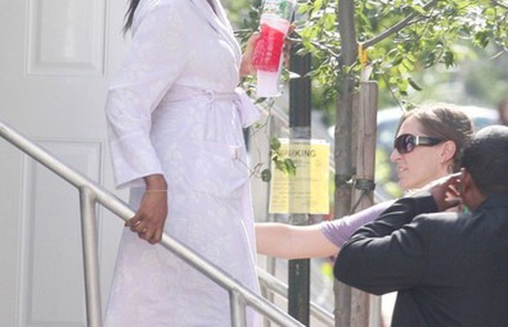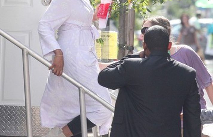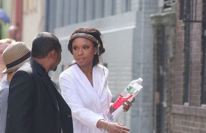 Leik og söngkonan fagra Jennifer Hudson var mynduð á meðan hún undirbjó sig á tökustað kvikmyndarinnar, Smash. Hudson sem hefur tekið ótrúlegum líkamlegum breytingum undanfarin ár leit einstaklega vel út og virðist halda stíft í þann heilbrigða lífstíl sem hún hefur tileinkað sér. Eins og sjá má á myndunum skottaðist Hudson um á sloppnum á tökstað og lét ljósmyndarana sem fylgust með henni ekki trufla sig.