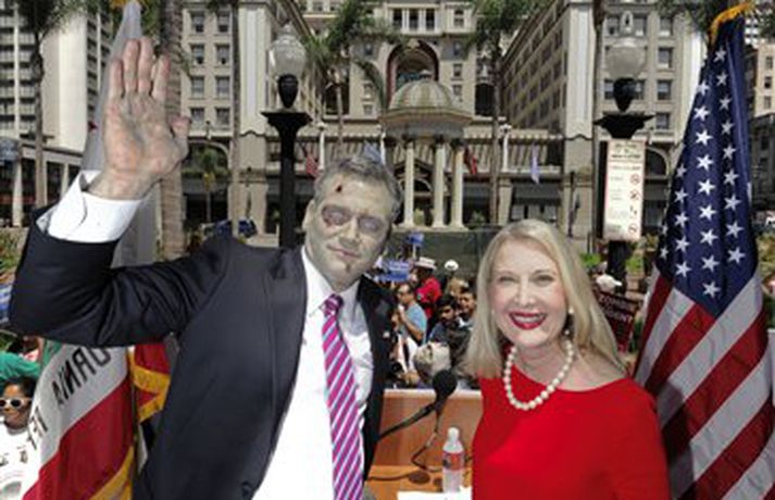 Uppvakningur í framboð - keyrir á einu máli 21. ágúst 2012 22:30 Hjónin A. Zombie og Patty Morgan-Zombie. mynd/AP Uppvakningur mun tilkynna um framboð sitt til embættis forseta Bandaríkjanna á næstu dögum. Hræið, sem kallar sig A. Zombie, mun ferðast um landið á næstu dögum ásamt mennskri konu sinni. Framboðið mun vafalaust lífga upp á kosningabaráttuna í Bandaríkjunum. A. Zombie og eiginkona hans, Patty Morgan-Zombie, munu heimsækja sex borgir á næstu dögum en framboðið verður formlega kynnt í San Diego í næstu viku. Hjónin munu einnig heimsækja flokksþing Demókrata og Repúblikana í Charlotte og Tampa. Kosningaloforð A. Zombie þykja afar einföld. Aðspurður um skoðanir sínar á umhverfisvernd sagði hann aðeins fjögur orð: minnka, endurnýta, endurvinna, endurholga. „Eiginmaður minn hefur helgað líf sitt, og framhaldslífi, baráttunni fyrir réttindum uppvakninga og áhorfenda," sagði Morgan-Zombie í samtali við Reuters fréttastofuna. „Hann mun berjast fyrir því að koma uppvakningum á öll heimili í Bandaríkjunum — jafnvel þó að það drepi hann aftur." Margir hafa þó haft orð á því að A. Zombie sigli undir fölsku flaggi. Líklegt þykir að framboðið sé í raun slunginn auglýsingaherferð fyrir nýjustu þáttaröðina af The Walking Dead sem tekin verður til sýninga seinna á þessu ári. Mest lesið Hýdd 140 sinnum fyrir áfengisneyslu og kynlíf utan hjónabands Erlent Fífldjarft að fara í formanninn en varaformannsembættið...? Innlent Trump vill hafa Pútín og Xi út af fyrir sig Erlent Njósnastjóri Trumps leitar að kosningasvindli Erlent Játaði brot sín og sleppur ekki aftur við fangelsisvist Innlent „Muni ekki valda neinu öðru en umferðaröngþveiti“ Innlent Lögregla eltist við afbrotamenn Innlent Hafði aldrei heyrt um handbolta fyrr en hún kynntist handboltaóðu þjóðinni Innlent Myndbirtingar foreldra geti skapað hættu Innlent Trump segir Pútín hafa samþykkt hlé á árásum á Kænugarð Erlent Fleiri fréttir Tíu ákærðir fyrir að drepa friðaða úlfa Trump vill hafa Pútín og Xi út af fyrir sig Hýdd 140 sinnum fyrir áfengisneyslu og kynlíf utan hjónabands Trump segir Pútín hafa samþykkt hlé á árásum á Kænugarð Njósnastjóri Trumps leitar að kosningasvindli Reyndi að frelsa Mangione vopnaður pítsaskera Saksóknarar hóta uppreisn í Minneapolis „Hættulegasti maður Noregs“ fannst látinn í fangaklefa Segir Venesúela munu þurfa að sækja um úthlutun úr eigin olíusjóði í Katar Ellefu meðlimir glæpafjölskyldu teknir af lífi í Kína Fundu fjarlægustu vetrarbrautina hingað til Segir útsendara „mögulega“ ekki hafa fylgt verkreglum Segir Trump ekki reiðan Íslandi Dómsdagsklukkan færð fram Sendir herskipaflota að Íran og hótar „ofbeldi“ Helsta klappstýran sögð slegin yfir sálarástandi Trumps Verða ekki viðstödd réttarhöld stjúpsonarins Vilja veita þúsundum sem dvelja ólölega á Spáni dvalarleyfi Ná saman um myndun minnihlutastjórnar í Hollandi Maður sprautaði illa lyktandi vökva á Ilhan Omar Róa á nýnasistamið í leit að ICE-liðum Dómari stöðvar brottflutning Liam og föður hans Bandaríkin hyggja á heræfingar í Mið-Austurlöndum Svíar líta til kjarnorkuvopna Tónninn breytist með yfirmannaskiptum hjá ICE Tala fallinna og særðra nálgast tvær milljónir Svíar hyggjast lækka sakhæfisaldur „Móðir allra samninga“ Um þriðjungur Dana fær 50 þúsund króna „matartékka“ beint í vasann frá ríkinu Segja mögulegt að yfir 30.000 hafi verið drepin í mótmælunum Sjá meira