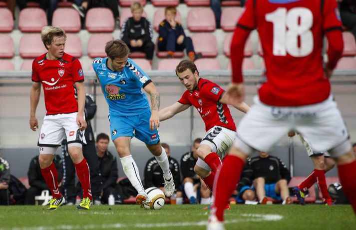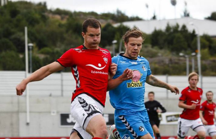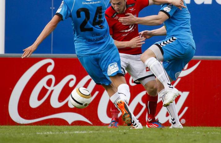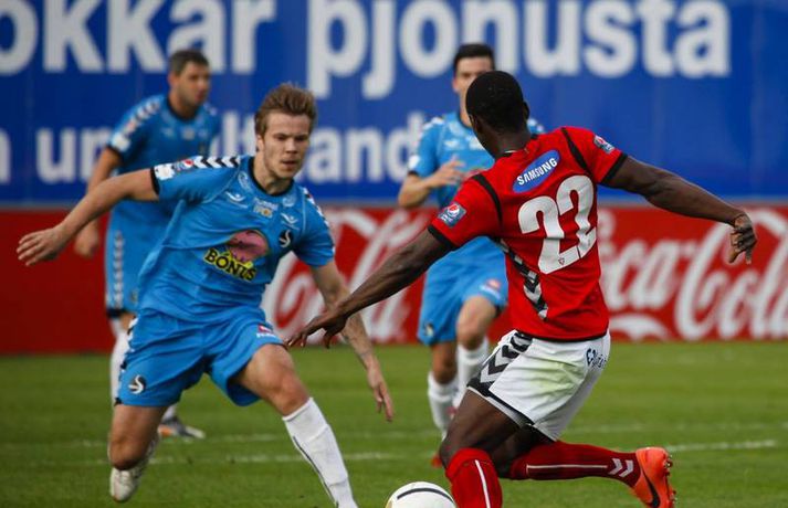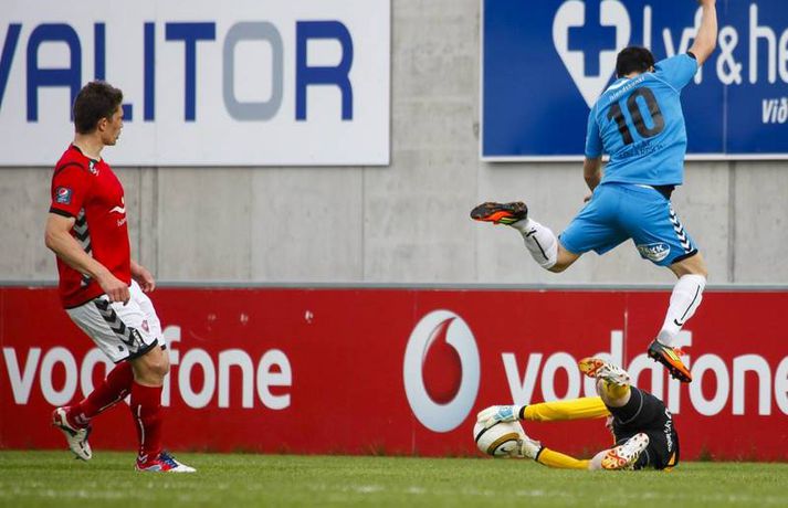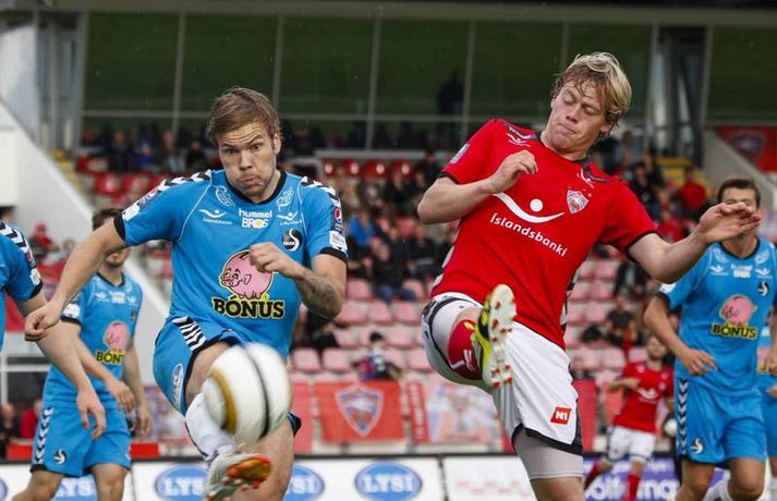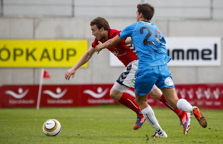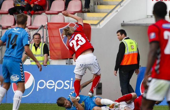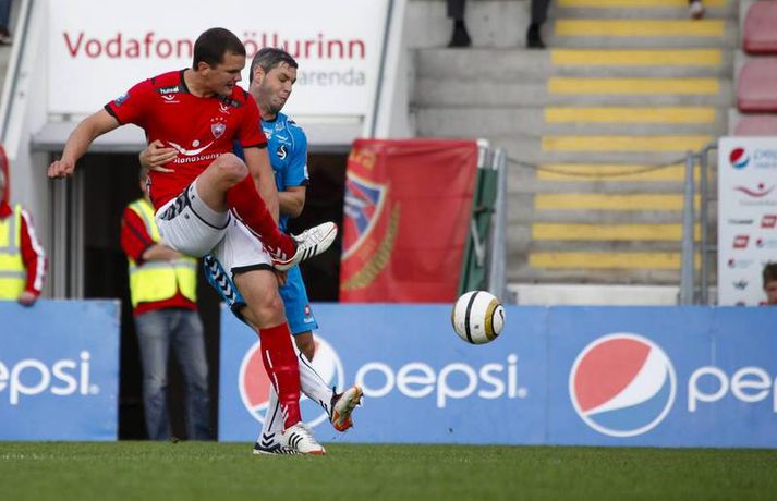 Fylkismenn tóku öll þrjú stigin með sér af Vodafonevellinum í kvöld þegar þeir unnu 2-1 sigur á Valsmönnum í 16. umferð Pepsi-deildar karla. Valsmenn hafa þar með aðeins náði í 3 af 18 mögulegum stigum út úr næsta leik eftir sigurleik. Valsmenn unnu tvo fyrstu leiki sína í sumar en hafa síðan alltaf tapað í næsta deildarleik eftir sigur. Fylkismenn enduðu tveggja leikja taphrinu með þessum sigri og eru nú aðeins einu stigi frá fjórða sæti deildarinnar. Ernir Eyjólfsson, ljósmyndari Fréttablaðsins og Vísis, var á leik Vals og Fylkis á Vodafone-vellinum í kvöld og náði þessum skemmtilegu myndum. Myndirnar má sjá í albúminu hér að neðan. Hægt er að sjá myndirnar stærri með því að smella á þær.