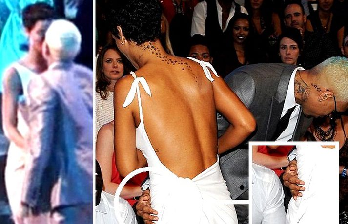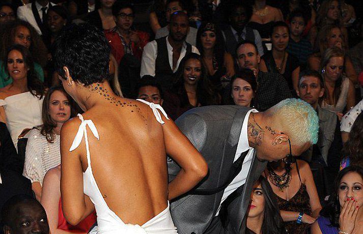 Rihanna, 24 ára, hefur vissulega sagt að söngvarinn Chris Brown, 23 ára, sem beitti hana ofbeldi og hún lögð inn á spítala í kjölfarið sé ástin í lífi hennar þrátt fyrir allt sem hún hefur þurft að upplifa með honum. Chris gekk upp að henni á MTV verðlaunaafhendingunni í gærkvöldi og kyssti hana og faðmaði eins og sjá má á meðfylgjandi myndum. Slúðurheimurinn heldur því fram að þau ætli að gefa ástinni annan sjéns.Rihanna fékk verðlaun fyrir besta myndbandið við lagið We Found Love.