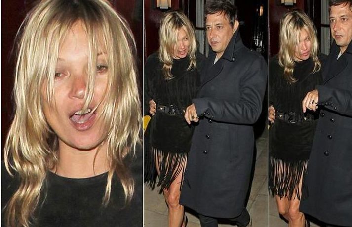Breska fyrirsætan Kate Moss og unnusti hennar Jamie Hince yfirgáfu saman veitingahúsið Mayfair í Lundúnum í fyrradag í frekar slæmu ástandi. Þetta er ekki í fyrsta sinn sem parið slettir allverulega úr klaufunum. Eins og vanalega bíða ljósmyndarar eftir þeim og mynda hvert spor sem þau taka.Skoða myndir hér. Breska pressan er reyndar hætt að kippa sér upp við það að Kate sé drukkin á almannafæri.Lífið á Facebook.