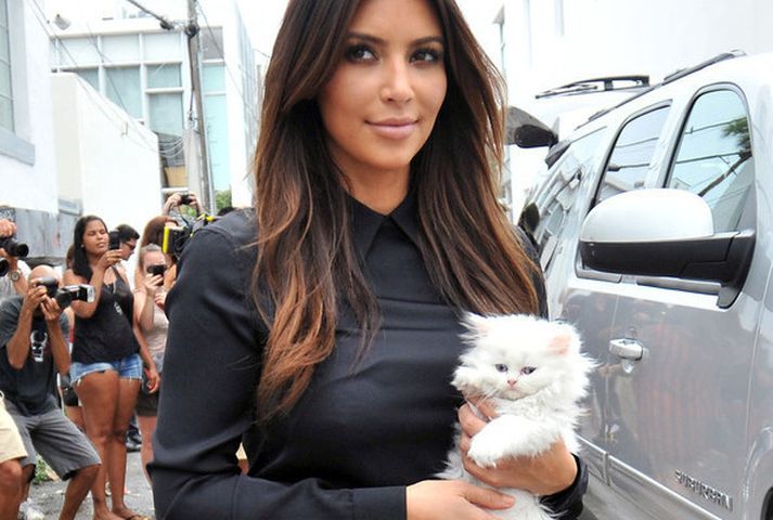 Lítil loðdýr virðast svo sannarlega vera í tísku hjá stjörnunum í Hollywood um þessar mundir. Þó svo að flestar þeirra kjósi að fá sér smáhunda sem þær geta haft í fanginu ákvað Kim Kardashian að fara aðra leið og hefur nú fengið sér dásamlegan hvítan ketling sem hún sást með um helgina. Frekar mikið sætur eins og sjá má á meðfylgjandi mynd.