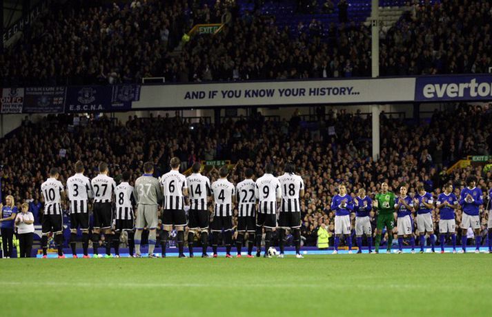 Liverpool þakklátt nágrannanum Eiríkur Stefán Ásgeirsson skrifar 17. september 2012 22:45 Liverpool birti í kvöld yfirlýsingu á heimasíðu sinni þar sem grannliðinu Everton er þakkaður sá hlýhugur sem fórnarlömbum Hillsborough-slyssins var sýndur í kvöld. Í síðustu viku var gerð opinber rannsóknarskýrsla um þennan örlagaríka dag á Hillsborough-vellinum þar sem 96 stuðningsmenn Liverpool létu lífið. Everton ákvað af því tilefni að minnast fórnarlambanna sérstaklega fyrir leik liðsins gegn Newcastle í kvöld. Nöfn þeirra allra voru birt á risaskjá á meðan lag hljómsveitarinnar Hollies, „He Ain't Heavy, He's my Brother", hljómaði. Tveir ungir stuðningsmenn félaganna leiddust út á völlinn - stúlka sem var klædd í Everton búning með númerinu 9 og Liverpool-drengur í treyju númer 6. Þá voru boltakrakkar í leiknum í treyjum merktum númerinu 96. „Ég vil senda öllum starfsmönnum og stuðningsmönnum Everton mínar innilegustu þakkir fyrir þann stuðning sem þau sýndu fjölskyldum fórnarlambanna í kvöld," sagði Ian Ayre, framkvæmdarstjóri Liverpool. „Þessi tvö félög hafa ávallt verið miklir erkifjendur í leik en utan vallarins styðjum við hvort annað. Everton var til staðar fyrir okkur eftir slysið á sínum tíma og svo aftur nú eftir að niðurstöður rannsóknarnefndarinnar voru birtar." „Það er á stundum sem þessum sem fótboltaerjur gleymast. Þessi borg er einstök og ég held að stuðningsmenn beggja liða geta verið afar stolt af framferði sínu síðustu daga, vikur og þau ár sem liðin eru frá slysinu hörmulega." Mest lesið Ekkert bit í snáknum: „Hörmulegur og ætti að hætta“ Sport Stoltur af stráknum en ætlar ekki að kaupa hann aftur Handbolti „Þú birtir falsfrétt um mig, þú ert í banni“ Fótbolti United horfir til Þýskalands eftir höfnun Semenyo Enski boltinn Haaland stóðst vigtun eftir jólin Enski boltinn Goðsögn fallin frá Enski boltinn Þessi tíu eru tilnefnd sem Íþróttamaður ársins 2025: 23 ára aldursmunur Sport Zidane sá soninn spila á Afríkumótinu Fótbolti Cunha vill skemmta og Howe treystir leikmönnum Enski boltinn Hápunktarnir hingað til í enska boltanum Enski boltinn Fleiri fréttir Cunha vill skemmta og Howe treystir leikmönnum United horfir til Þýskalands eftir höfnun Semenyo Haaland stóðst vigtun eftir jólin Hápunktarnir hingað til í enska boltanum Goðsögn fallin frá Kærður af knattspyrnusambandinu Bestu jólamörkin: Drogba, Scholes eða Giroud? Van de Ven bað Isak afsökunar: „Vildi ekki meiða hann“ Hvers vegna heillast stórliðin svo af Semenyo? Stewart, Snoop og Modric í eina sæng Vill ekki segja hversu lengi Bruno er frá Spyr hvort Guardiola stígi á vigtina Arsenal í undanúrslit eftir vító Man. Utd reyndi stíft en Semenyo kaus City „Tölfræðilega séð eiga þeir ekkert að vera í þessari stöðu“ Chelsea setur sig í samband við Semenyo Jiménez jafnaði bestu vítaskyttu sögunnar Slot mun sakna Isak í tvo mánuði eftir „glórulausa tæklingu“ Sjáðu „auma“ vítið sem skilaði Fulham sigri Fulham skildi Forest eftir við fallsvæðið Áfallið staðreynd og Isak búinn í aðgerð Fagnaði titli Liverpool sem óður maður um alla borg „Allir virðast elska hann“ „Þetta mun ekki buga okkur“ Guardiola mun vigta leikmenn Man City eftir jólin „Ef þið væruð Antoine Semenyo, hvert mynduð þið fara?“ Sjáðu mörkin: Rogers sá um Manchester United Óttast að Isak hafi fótbrotnað Tvenna frá Rogers tryggði Villa sigur gegn Manchester United Fimmta sinn sem Arsenal er á toppnum um jólin: Unnu ekki titilinn í fyrstu fjögur skiptin Sjá meira