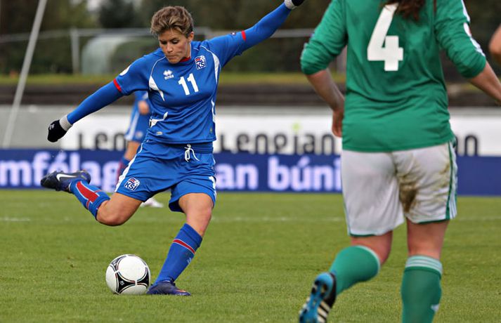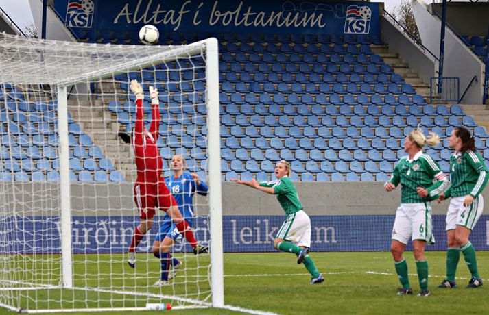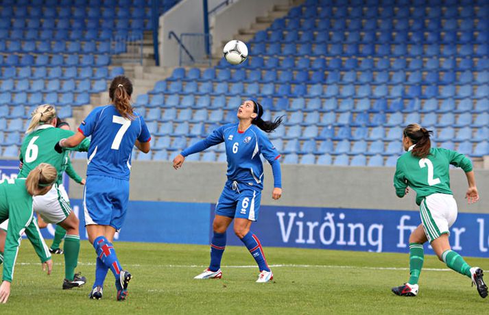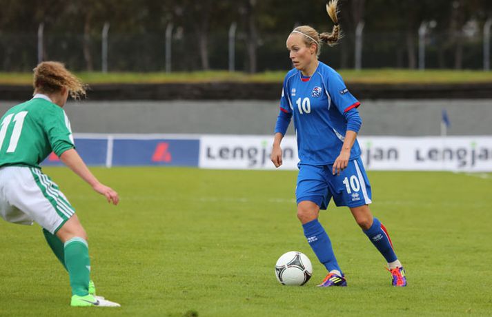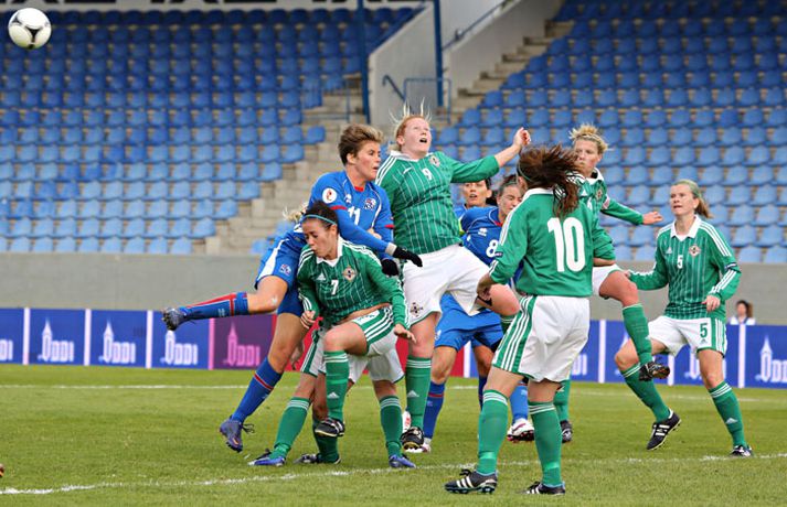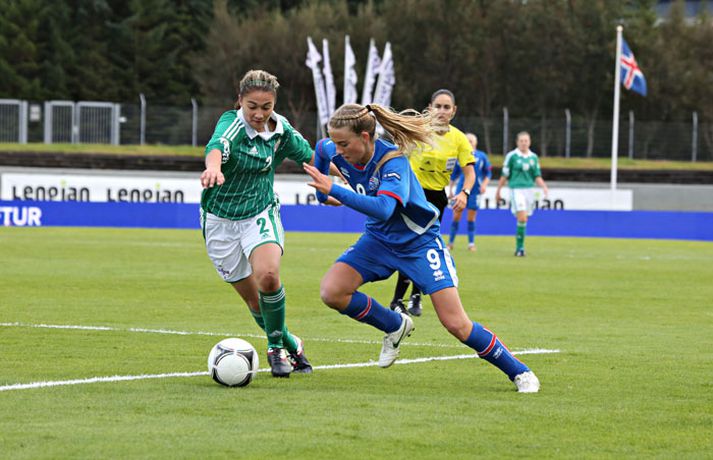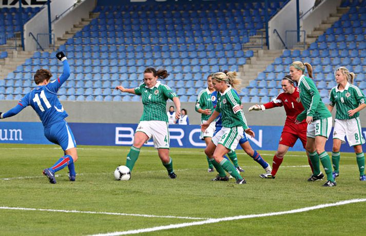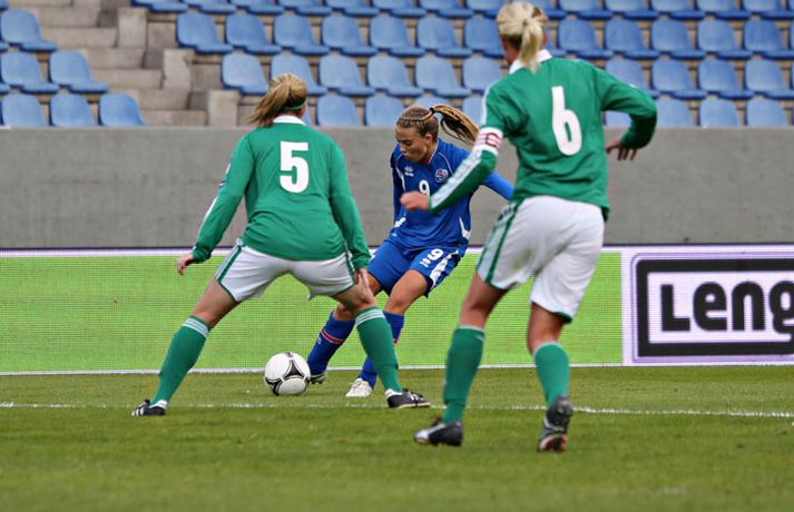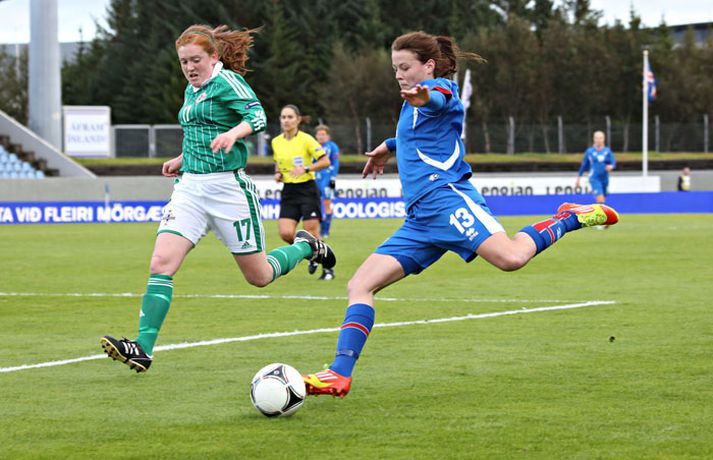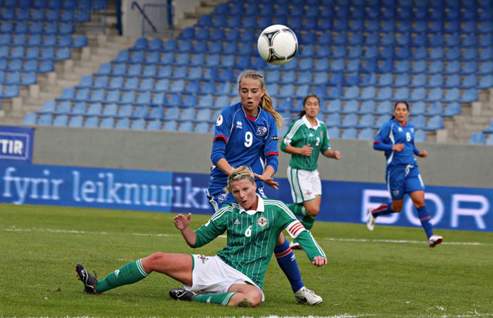 Umfjöllun og viðtöl: Ísland - Norður-Írland 2-0 Ísland vann virkilega mikilvægan sigur, 2-0, á Norður-Írum í undankeppni Evrópumótsins í knattspyrnu kvenna sem fram fer árið 2013 í Svíþjóð. Íslenska liðið er því í efsta sæti riðilsins fyrir lokaleikinn gegn Norðmönnum sem fram fer á miðvikudaginn og dugar liðinu eitt stig í þeim leik til að tryggja sig á mótið. 15. september 2012 00:01