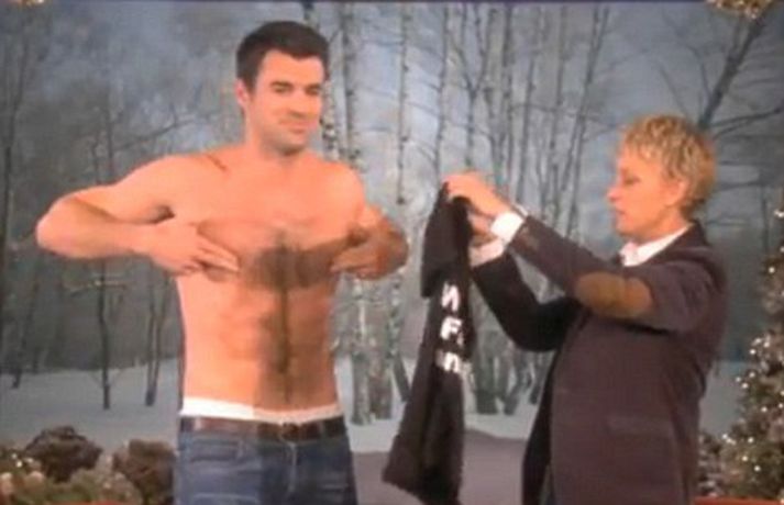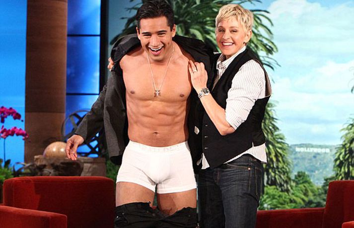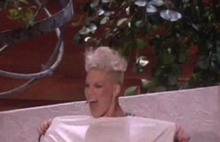 Poppprinsessan Pink kom áhorfendum hressilega á óvart þegar hún sýndi nærbuxurnar sínar í þætti grínistans Ellen DeGeneres í vikunni. En hún er alls ekki sú eina sem er haldin strípihneigð í settinu hjá Ellen eins og meðfylgjandi myndir sýna. Leikarinn Ashton Kutcher er reyndar sá eini sem hefur farið úr öllu en það var til að kynna sjónvarpsþáttinn Two and a Half Men. Ellen bara hefur þessi áhrif á stjörnurnar.