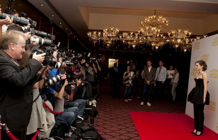 Leikkonan Emma Watson, 22 ára, stillti sér upp á rauða dreglinum klædd í Dior fatnað. Eins og sjá má var hún í stuttum hlíralausum kjól og buxum við. Þetta dress fór henni áberandi vel og ekki spillti hárgreiðslan fyrir. Um var að ræða frumsýningu á myndinni The Perks of Being a Wallflower í Lundúnum. Skoða má Dior dressið betur í myndasafni.