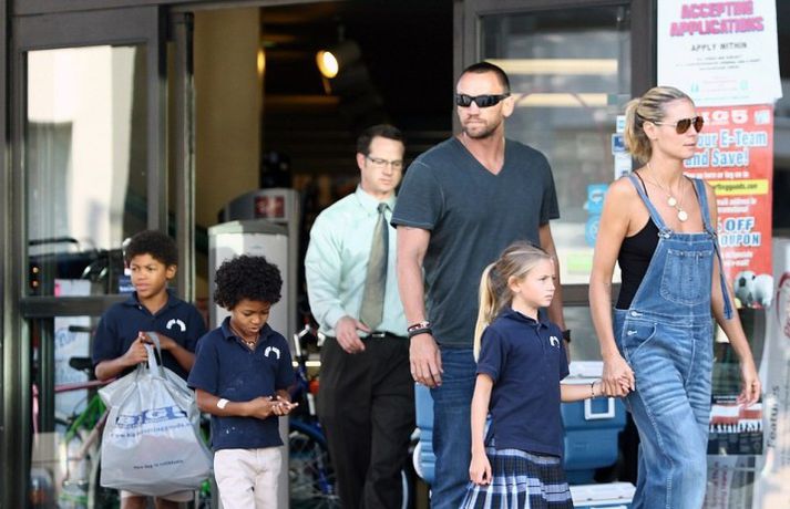 Þýska sjónvarpsstjarnan og fyrirsætan Heidi Klum, 39 ára, var ómótstæðileg á rauða dreglinum Emmy verðlaunahátíðinni. Hún var klædd í síðan Alexandre Vauthier kjól.Lífvörðurinn hennar og kærasti, Martin Kristen, var myndaður með Heidi og börnum hennar, Leni, Johan, og Henry versla í Kaliforníu. Ef myndirnar eru skoðaðar má sjá að Heidi er í smekk-gallabuxum. Hún er alls ekki síðri í þeim en á rauða dreglinum eða hvað finnst þér?