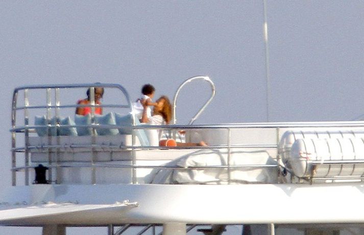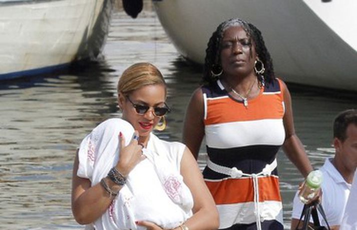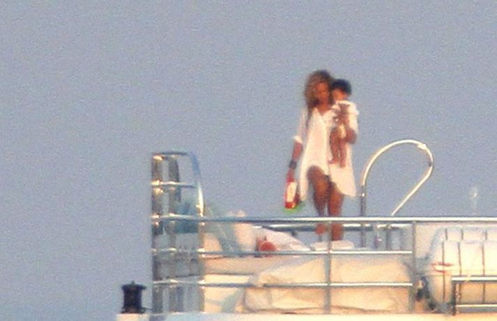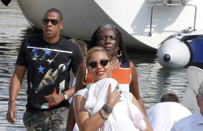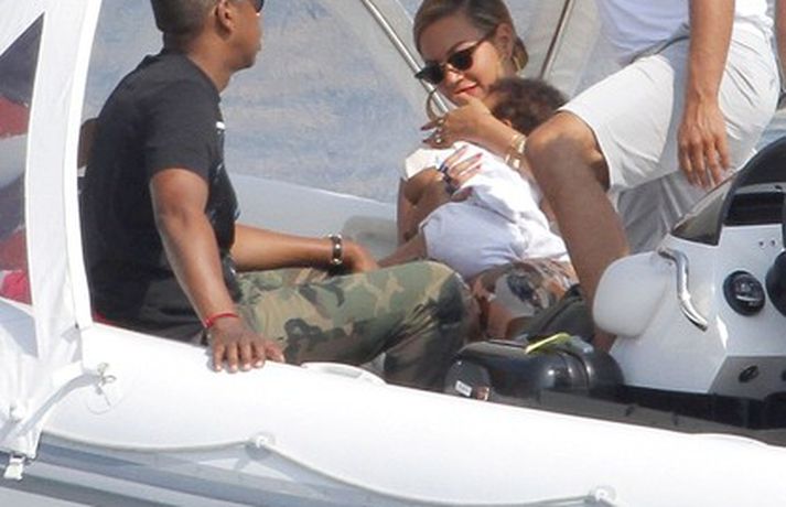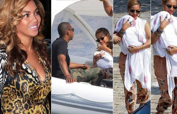 Söngkonan Beyonce Knowles, 31 árs, mætti í glæsilegum Roberto Cavalli hlébarðakjól í teiti sem haldið var á sunnudagskvöldið í New York. Þá var söngkonan mynduð með eiginmanni sínum, rapparanum Jay-Z og dóttur þeirra, Blue Ivy, sem fæddist 7. janúar síðastliðinn, á lúxussnekkju í Suður-Frakklandi fyrr í mánuðinum. Eins og sjá má á myndunum reyndi Beyonce allt hvað hún gat til að hylja andlit stúlkunnar.