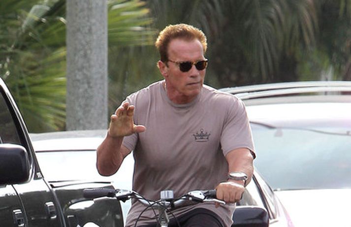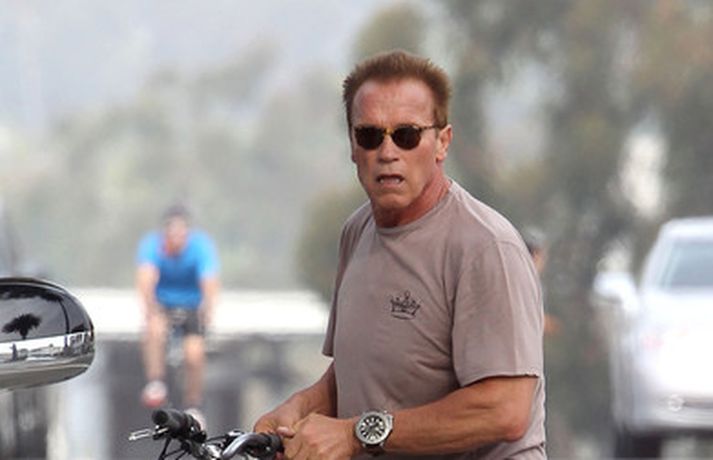 Goðsögnin Arnold Schwarzenegger fékk sér hjólatúr með dóttur sinni Christinu í Santa Monicu í Kaliforníu á laugardaginn. Arnold getur svo sem verið slakur þessa dagana því kvikmyndin The Expendables 2 hefur rakað inn milljónum. Mótleikarar Arnolds í myndinni eru líka ekkert slor – til dæmis Sylvester Stallone og Jason Statham. Nú bíða aðdáendur vöðvafjallsins í ofvæni eftir kvikmyndinni The Last Stand sem kemur í kvikmyndahús vestan hafs í janúar á næsta ári.Smelltu á myndina til að skoða albúmið.