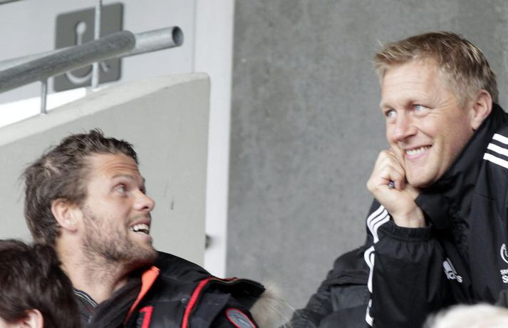 ÍBV styrkti stöðu sína í öðru sæti Pepsi-deildar karla með sannfærandi 3-0 sigri á Val í kvöld. Hermann Hreiðarsson, verðandi þjálfari ÍBV, fylgdist með í stúkunni en þar voru einnig þeir Heimir Hallgrímsson og Magnús Gylfason - síðustu tveir þjálfarar ÍBV. Vilhelm Gunnarsson, ljósmyndari Vísis og Fréttablaðsins, var á vellinum og tók þessar myndir.Mynd/Vilhelm