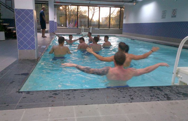 Hænur og dauður hundur á markmannsæfingu Eiríkur Stefán Ásgeirsson skrifar 8. október 2012 22:30 Mynd/KSÍ Íslenska landsliðið í knattspyrnu er komið til Albaníu þar sem liðið mun mæta heimamönnum í undankeppni HM 2014 á föstudagskvöldið. Gunnleifur Gunnleifsson, annar markvarða landsliðsins, sagði á Facebook-síðu sinni í kvöld að þeir hefðu æft við nokkuð sérstakar aðstæður í dag. „Fór á markmannsæfingu hér í Albaníu. Við Hannes Þór Halldórsson æfðum á velli þar sem hænur og dauður hundur(allavega hreyfði hann sig ekki) voru bara hinum megin við línuna!! Alveg eðlilegt hérna!" Hér fyrir ofan má sjá skemmtilegar myndir sem voru birtar á Facebook-síðu KSÍ í dag.Vísir HM 2014 í Brasilíu Mest lesið Gagnrýnir lýsingu Einars Arnar: „Tuðandi nánast allan leikinn“ Handbolti Bjarka sagt að koma ekki aftur til Ungverjalands Handbolti Elvar úr leik á EM Handbolti „Beint flug til Köben og nokkrir veikindadagar“ Handbolti Svona meiddist Elvar Handbolti „Langt frá því að vera faglegt“ hjá dómaraparinu frá Norður-Makedóníu Handbolti Danir í sjokki eftir fyrsta tapið á heimavelli í tólf ár Handbolti Skýrsla Henrys: Nú er hún gamla Grýla dauð Handbolti „Núna er allt betra“ Handbolti Einkunnir Strákanna okkar á móti Ungverjalandi: Viktor vaggaði Ungverjagrýlunni í svefn Handbolti Fleiri fréttir Feginn Frank fékk sér tvö stór rauðvínsglös Sjáðu mörkin úr Meistaradeildinni: Tvenna Jesus, óvænt töp, veisla í Madríd og langþráður sigur Lærir inn á nýtt umhverfi: „Ég mun gera mörg mistök“ Xabi Alonso myndi segja nei við öllum núna nema Liverpool Bauð Paul Scholes heim til sín til að ræða málin Real Madrid skoraði sex mörk í Meistaradeildinni Gabriel Jesus stjarna Arsenal í enn einum Meistaradeildarsigrinum City fékk skell í Noregi Fyrirliði FHL er mættur í Laugardalinn KSÍ staðfestir leik gegn heimilislausa HM-liðinu Leikmaður Liverpool lenti í eltihrelli Vilja sjá þessa stjóra í brúna hjá United Telma eltir þjálfarann í Garðabæinn Hringdu dag og nótt til að klófesta Guðmund: „Konan var að verða geðveik á þeim“ Ísland spilar við gestgjafa HM og Haítí Bestu mörkin: Sjáðu glæsilegan hjólhest gríska táningsins „Sumir ungir þjálfarar nú til dags eru hrokafullir“ Benoný til bjargar eftir vandræðalegt sjálfsmark liðsfélaga „Carrick gaf stuðningsmönnum „smjörþefinn“ af Ferguson-tímanum“ Hjólhestaspyrna táningsins tryggði Brighton stig Mourinho kallar nýjustu sögusagnirnar sápuóperu Bryndís Arna er komin heim og samdi við Breiðablik Guardiola um Haaland: „Hann svaf ótrúlega vel“ Marokkó leitar réttar síns hjá FIFA: „Þetta sár grær ekki auðveldlega“ Hörður Björgvin tekinn af velli í hálfleik í unnum leik Yfirmaður Jóns Dags í stríði við lögreglu Guéhi genginn til liðs við City Börsungar brjálaðir út í dómara sem tók þrjú mörk af þeim „Þetta eru svakaleg kaup“ Slóst við boltastráka sem vildu stela handklæðinu Sjá meira