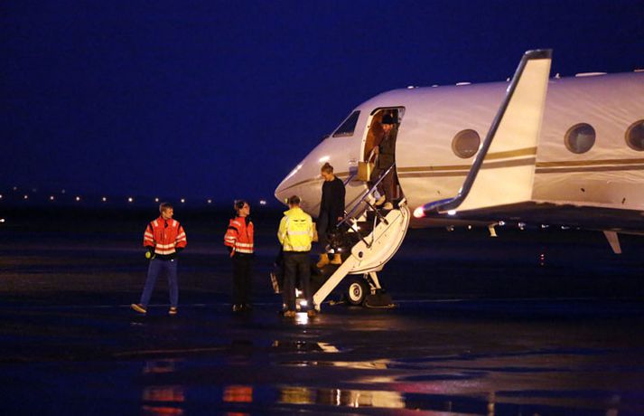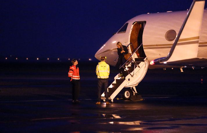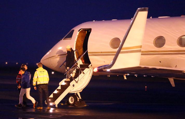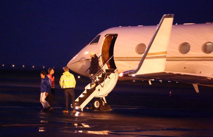 Lady Gaga lent 8. október 2012 19:16 Vél Lady Gaga er lent á Reykjavíkurflugvelli. Hún lenti klukkan korter yfir sjö. Töluvert umstang er í kringum Reykjavíkurflugvöll vegna komunnar en þar eru tollverðir og þá hefur fréttamaður Stöðvar 2 og Vísis orðið var við lífverði á vellinum. Eins og fram hefur komið er Lady Gaga komin hingað til lands til að taka á móti friðarverðlaunum úr Lennon/Ono sjóðnum. Athöfnin mun fara fram í Hörpu á morgun en auk Lady Gaga munu fjórir aðrir taka við verðlaununum. Þeirra á meðal er eiginmaður einnar úr rússnesku pönkhljómsveitinni Pussy Riot og foreldrar Rachel Corrie, sem lést þegar hún varð fyrir skriðdreka í Palestínu. Sé smellt á hlekkinn hér að neðan má sjá fjöldi mynda sem Daníel Rúnarsson tók af Lady Gaga og föruneyti hennar við komuna til landsins. Mest lesið „Ég er sá sem getur fellt hann“ Erlent Moskító mætt á Suðurland Innlent Hafi kallað drenginn „grenjuskjóðu“ Innlent Þorleifur Kamban er látinn Innlent Hellti bjór yfir slasaðan hjólreiðamann sem lá í götunni Innlent Þreyttir íbúar Grjótaþorpsins fá einstefnu Innlent Stríð Trumps við fjölmiðla teygir sig yfir Atlantshafið Erlent Lætur ráðherra fjúka vegna umfangsmikils spillingarmáls Erlent Veðmálafyrirtækin geti eflt íþróttafélög til muna Innlent Tillaga Sjálfstæðismanna um gjaldfrjáls stæði á messutíma felld Innlent Fleiri fréttir Bera ábyrgð á þjófnaði gámsins en sleppa með skrekkinn Kjósa um sex efstu í prófkjöri hjá Sjálfstæðisflokki í Hafnarfirði Hafi kallað drenginn „grenjuskjóðu“ Þreyttir íbúar Grjótaþorpsins fá einstefnu ÍSÍ ætli að skoða kostnað við æfingagjöld barna Moskító mætt á Suðurland Tillaga Sjálfstæðismanna um gjaldfrjáls stæði á messutíma felld Hellti bjór yfir slasaðan hjólreiðamann sem lá í götunni Veðmálafyrirtækin geti eflt íþróttafélög til muna Framlag Íslands til Parísarsamningsins óháð ESB-markmiði Loftgæði verði áfram slæm Árelía kveður borgarpólitíkina Tilfinningar í þingsal og Inga brosir hringinn „Meiddist og varð mjög hræddur um líf sitt“ Nú eru kettir og hundar leyfðir í fjölbýli Vondar fréttir af tollum ESB og gróf árás á Stuðlum Samingur SÞ um réttindi fatlaðs fólks lögfestur Hæstiréttur hafnaði kröfum hópnauðgara Íbúar kvarta undan myrkri „Dáldið vók“ Diljá sé sjálf með forneskjuleg viðhorf til kvenna Starfsmaður Stuðla grunaður um að ráðast á barn Sonurinn týndur síðan í ágúst „Ég hef aldrei grátið af gleði áður en ég gerði það í gær“ Leiðbeinandinn ákærður fyrir að nauðga einu barni tvisvar Ísland ekki undanþegið verndartollum ESB á kísilmálm Dularfullar skemmdir reyndust vera eftir strangheiðarlegt óhapp Móta stefnu um notkun gervigreindar Dómsmál á hendur starfsmanni Múlaborgar hafið Þorleifur Kamban er látinn Safnar undirskriftum til varnar síðdegisbirtunni Sjá meira