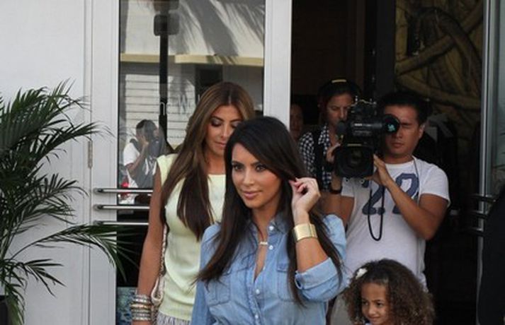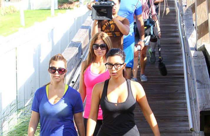 Eins og sjá má á myndunum sem teknar voru í morgun fóru fram tökur á sjónvarpsraunveruleikaþætti Kardashian klansins sem ber heitið "Keeping Up with the Kardashians". Systurnar Kim og Kourtney byrjðu daginn snemma með morgungöngu umkringdar tökumönnum. Sama dag fór Kim í bæjarferð klædd í blátt pils, skyrtu og hvíta hælaskó við sem skoða má HÉR.Lukkuleikur Lífsins.
