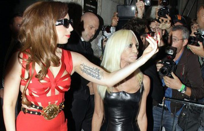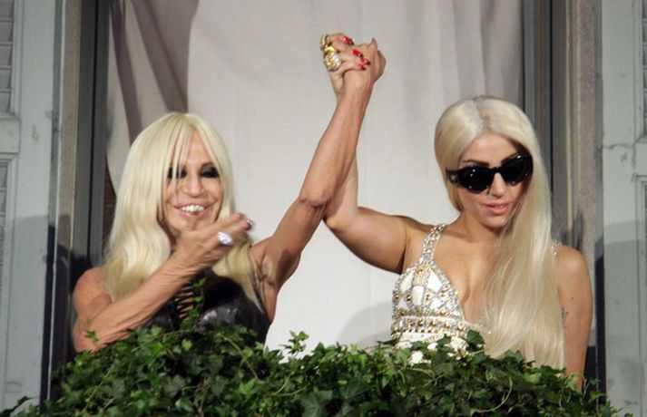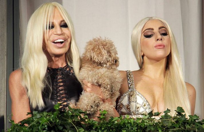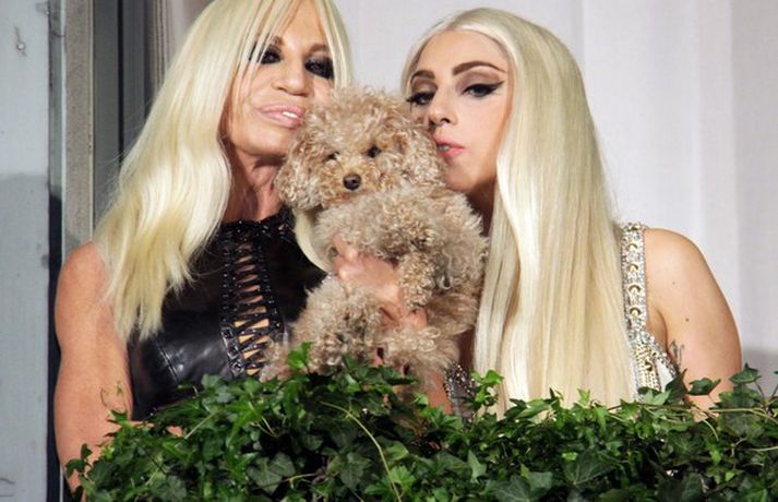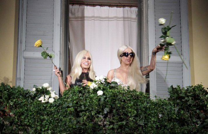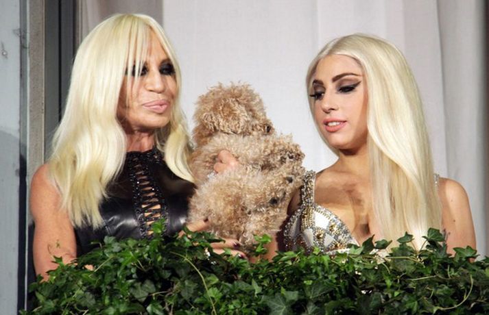 Söngkonan Lady Gaga og hönnuðurinn Donatella Versace hittust opinberlega í Mílanó á Ítalíu á mánudaginn var. Vinkonurnar stilltu sér saman upp á svölum með Fozzi, hundinum hennar Lady Gaga, í fanginu, og hentu rósum til aðdáenda sem stóðu fyrir utan bygginguna. Eins og sjá má í myndasafni er Lady Gaga ekk svo ólík Donatellu með ljósa hárkollu - eða hvað?Lukkuleikur Lífsins.