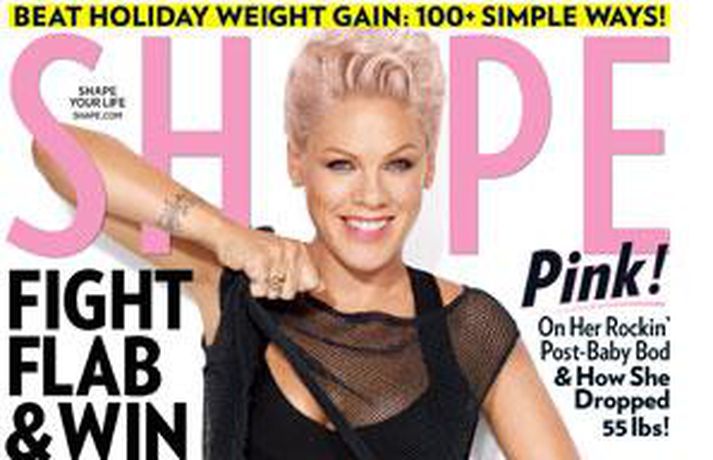 Söngkonan PInk, 33 ára, prýðir forsíðu heilsutímaritsins Shape þar sem hún sýnir rennisléttan magann klædd í nærföt og gegnsæjan bol. Í tímaritinu talar Pink um að hafa þyngst um 25 kg þegar hún gekk stúlkuna sína sem heitir Willow Sage Hart. Stúlkan fæddist í júní í fyrra og í dag er Pink komin með einkaþjálfara sem sér til þess að hún borði holla fæðu og hreyfi sig reglulega.Það er vinna á bak við þessa magavöðva.Mamma Pink geislar.