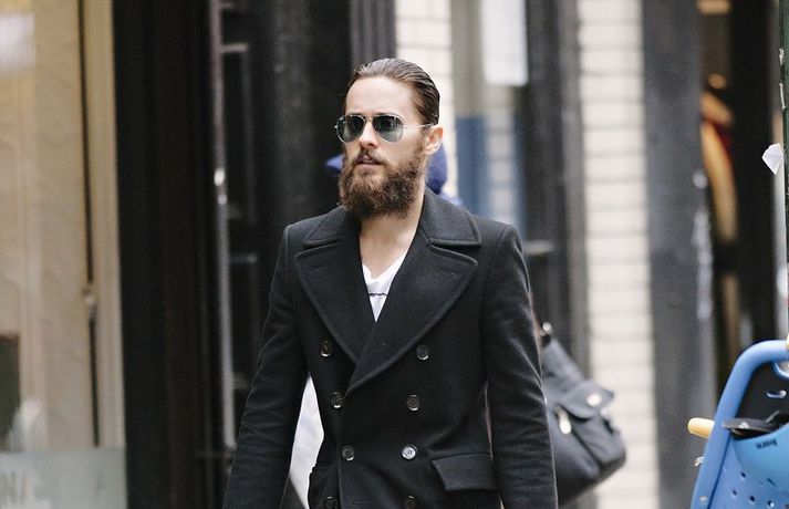 Leikarinn Jared Leto, 40 ára, gekk hröðum skrefum um Soho hverfið í New York í gærdag með hárið vatnsgreitt aftur og skeggjaður. Eins og leikarinn segir sjálfur þá er hann fullur af sjálfstrausti og er slétt sama hvaða skoðun aðrir hafa á honum.Óþekkjanlegur Jared Leto.
