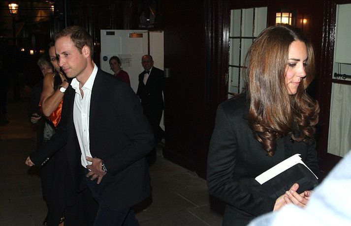 Vilhjálmur Bretaprins yfirgaf skemmtistaðinn Loulou í gærkvöldi ásamt eiginkonu sinni Kate Middleton bakdyramegin í gær. Prinsinn átti erfiðan dag en barnfóstra hans til margra ára var borin til grafar fyrr um daginn. Vilhjálmur var mjög tengdur barnfóstrunni sem hugsaði um hann og bróður hans þegar þeir voru yngri.Pippa og félagi hennar yfirgáfu vinsælt veitingahús í London í gær rétt á eftir Vilhjálmi og Kate.Rétt á eftir Vilhjálmi og Kate gengu Pippa, systir Kate, og ónefndur vinur hennar, út um sömu dyr. Breska pressan hefur sýnt Pippu gríðarlega mikinn áhuga síðan Kate og Vilhjálmur giftust.Kate - ávallt glæsileg.