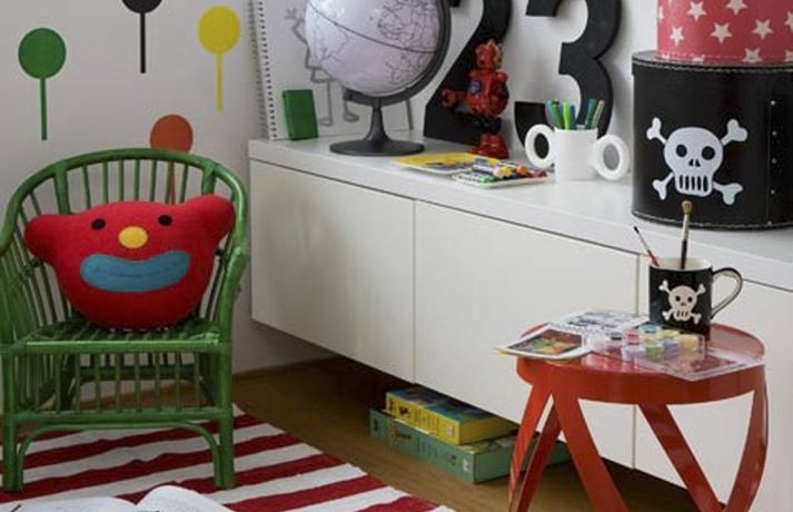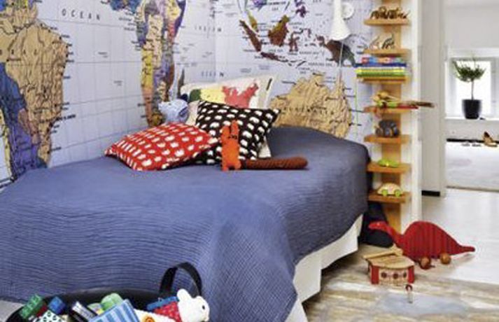 Hjá börnunum er ímyndunaraflið endalaust. Það er hluti af því að vera barn. Það að hanna barnaherbergi getur því verið mjög krefjandi í ljósi þess hversu fljótt börnin vaxa úr grasi. Það sem skiptir mestu máli er að leyfa sköpunargleðinni að ráða ríkjum og hafa herbergið áhugavert og skemmtilegt. Smáatriði skipta höfuðmáli.http://brietosk.com/Litir og mynstur sem krydda tilveruna.Krítatafla er góð leið til að koma fallegum skilaboðum til barnanna.Heimskort á vegg er bæði fróðlegt og fallegt!Gott skipulag er mikilvægt í barnaherberginu.