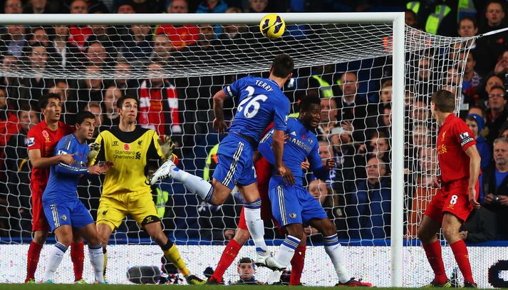Chelsea og Liverpool skildu jöfn SÁP skrifar 11. nóvember 2012 15:30 Nordic Photos / Getty Images Chelsea og Liverpool gerðu 1-1 jafntefli á Stamford Bridge í dag en John Terry gerði mark heimamann í leiknum og enginn annar en Luis Suarez skoraði jöfnunarmark Liverpool í leiknum. Chelsea var mikið mun sterkari aðilinn í fyrri hálfleik og náðu á endanum að skora þegar John Terry skallaði boltann í netið eftir frábæra hornspyrnu frá Juan Mata. Rúmlega korteri fyrir leikslok náði Luis Suarez að jafna metin fyrir Liverpool þegar hann skallaði boltann í netið af stuttu færi. Steven Gerrard tók hornspyrnu sem Jamie Garragher flikkaði áfram yfir á Suarez sem gat fátt annað gert en að skora. Chelsea er sem stendur í þriðja sæti deildarinnar með 24 stig, þremur stigum á eftir Manchester United. Liverpool er í því 13. með 12 stig. Enski boltinn Mest lesið Hafnaði 34 milljónum: „Vil ekki styðja kerfi sem býr til fíkn og eyðileggur líf“ Sport Littler sjóðheitur en sá fjórði besti varð fyrir áfalli Sport Liverpool-skotmarkið ekki á förum í janúar Enski boltinn Arnar Þór ráðinn til FIFA: „Himinlifandi að hafa fengið þetta starf“ Fótbolti Salah sakaður um dýfu: „Getum ekki keppt við Egypta og dómarana“ Fótbolti Syrgja átján ára fimleikakonu Sport Haukur náði hundrað og hundrað fyrir EM Handbolti Skoraði og fékk gult fyrir að benda Fótbolti Írar ætli að fylgja eftir tillögu Heimis Fótbolti Dagskráin í dag: Messan, meistarar Hauka, píla og NFL-veisla Sport Fleiri fréttir Liverpool-skotmarkið ekki á förum í janúar Aldrei spilað þarna en sagði strax já „Viss um að ég myndi skora einn daginn“ Watkins hélt ótrúlegri sigurgöngu Villa áfram Schade og Jiménez sendu Brentford og Fulham í efri hlutann Arsenal aftur á toppinn Fyrsta mark Wirtz í þriðja sigrinum í röð Cherki aðalmaðurinn í sigri City Úlfarnir heiðruðu minningu Jota Andri Lucas frá í mánuð Sjáðu dönsku þrumuna sem færði United-mönnum öll þrjú stigin Segir að Arsenal stefni á sögulega fernu á þessu tímabili Amorim endaði viðtalið á gamansömum nótum „Við eigum heima í Evrópu“ Daninn skaut Man. United upp fyrir Liverpool Amorim segir strákinn í frystinum vera framtíðin hjá Man. United Martinez með fyrirliðabandið og báðir Fletcher-bræðurnir á bekknum Havertz gæti snúið aftur á næstu dögum Alfons og Willum sáu tvö rauð spjöld fara á loft Synir Diogo Jota leiða leikmenn út á Anfield Cunha vill skemmta og Howe treystir leikmönnum United horfir til Þýskalands eftir höfnun Semenyo Haaland stóðst vigtun eftir jólin Hápunktarnir hingað til í enska boltanum Goðsögn fallin frá Kærður af knattspyrnusambandinu Bestu jólamörkin: Drogba, Scholes eða Giroud? Van de Ven bað Isak afsökunar: „Vildi ekki meiða hann“ Hvers vegna heillast stórliðin svo af Semenyo? Stewart, Snoop og Modric í eina sæng Sjá meira