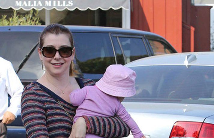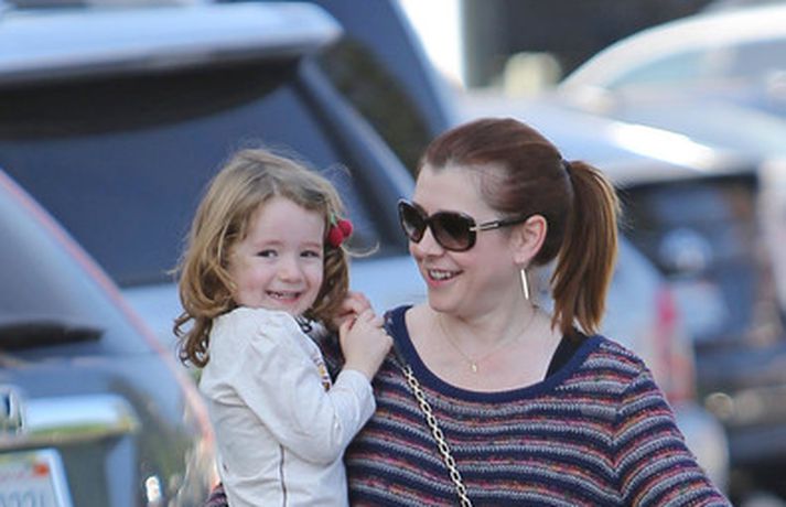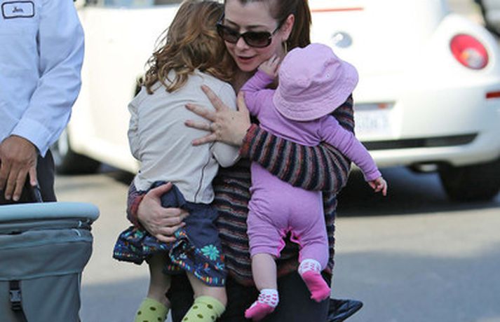 Leikkonan Alyson Hannigan hafði varla undan að knúsa dætur sínar tvær um helgina á bændamarkaði í Los Angeles.
