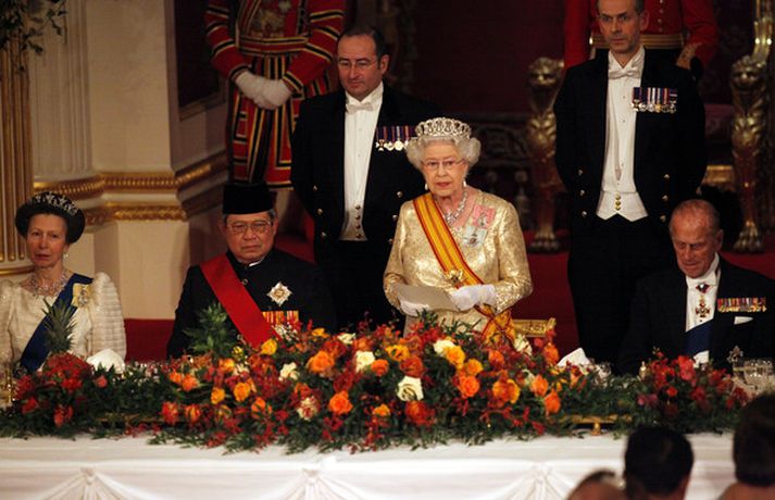 Globe tímaritið toppaði eflaust allar forsíður í vikunni. Í blaðinu er því haldið fram að Elísabet Bretadrottning, 86 ára, sé við það að deyja sökum versnandi heilsufars og til að toppa söguna er því haldið fram að Camilla eiginkona Karls Bretaprins sækist nú eftir krúnunni eins og enginn sé morgundagurinn. Forsíðan fer skiljanlega fyrir brjóstið á Bretum en drottningin sem var mynduð ásamt forseta Indónesíu á föstudaginn var kát og hraust á að líta eins og sjá má á myndunum.Er þetta ekki aðeins of langt gengið?Sérstök forsíða vægast sagt.Brosandi með fallegan hatt.