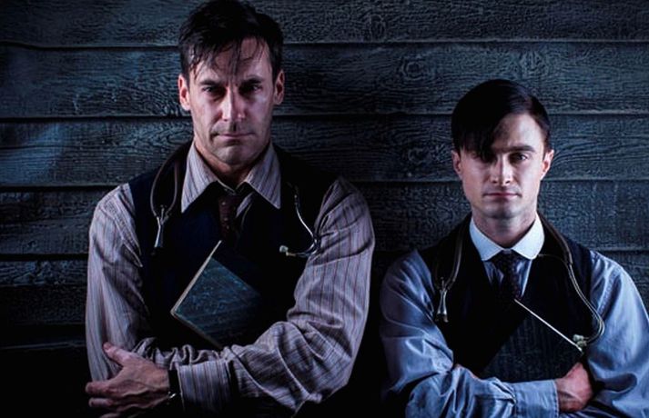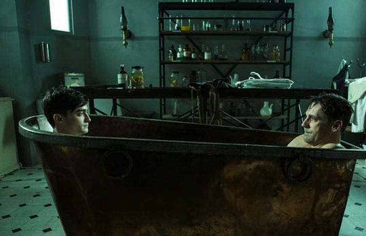 Leikararnir Jon Hamm og Daniel Radcliffe fara saman í bað í sjónvarpsseríunni A Young Doctor's Notebook.