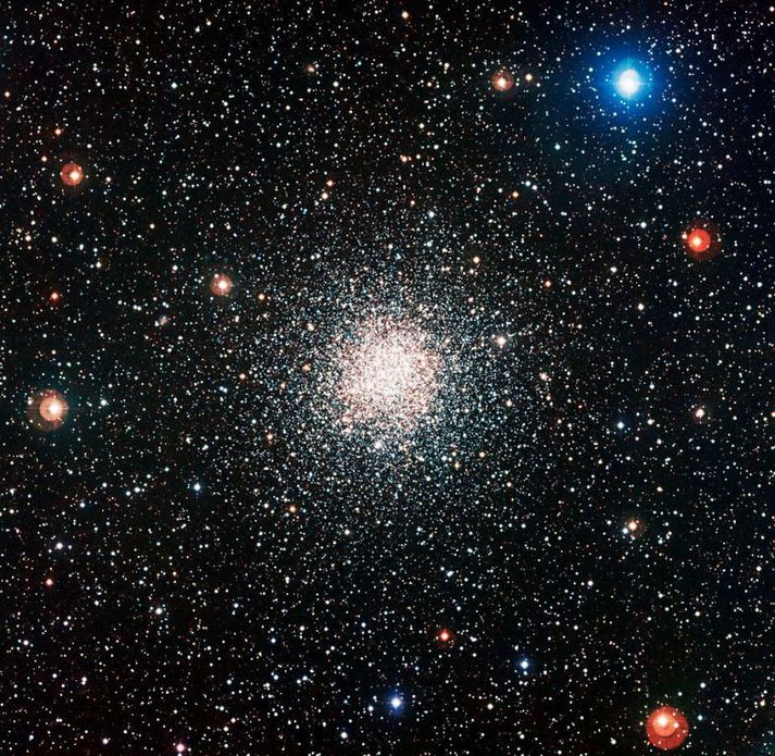 Eitt elsta fyrirbæri alheimsins ljósmyndað 1. nóvember 2012 12:01 Kúluþyrpingin NGC 6362. MYND/ESO Sjónaukinn MPG/ESO í La Silla, stjörnustöð ESO í Chile, hefur náð ótrúlegri mynd af einu elsta fyrirbæri alheimsins, kúluþyrpingunni NGC 6362. Þyrpingar af þessu tagi eru að mestu úr aldurhnignum stjörnum og það í tugþúsundatali. Einnig er þar að finna stjörnur sem virðast óvenju unglegar. Þar eru síðan margar gulleitar stjörnur sem gengið hafa í gegnum mestallt æviskeið sitt og eru orðnar að rauðum risum. Engu að síður eru kúluþyrpingar ekki aðeins óbreytanlegar fornleifar. Í þessum þéttu stjörnuhópum á sér stað einstök virkni. Til að mynda eru margir bláir flækingar, gamlar en þó unglegar stjörnur, í NGC 6362. Allar stjörnur í kúluþyrpingum urðu til úr sama efni og það samtímis, eða fyrir um 10 milljörðum ára. Samt sem áður eru bláir flækingar blárri og bjartari en þeir ættu að vera eftir tíu milljarða ára þróun. Stjörnufræðingar vilja nú ráða leyndardóma þessa flækinga. Tvær meginkenningar eru á lofti um tilurð þeirra. Annars vegar stjörnur sem rekast saman og sameinast. Hins vegar efnisflutningur milli tveggja stjarna.Hægt er að lesa nánar um NGC 6362 á Stjörnufræðivefnum. Mest lesið Töpuðu tæpum hundrað milljónum Innlent Milljónir í sekt fyrir að bakka á konu Innlent Þau kvöddu á árinu 2025 Erlent Hitinn fór í 19,8 stig og desembermetið slegið Veður Yfir hundrað handteknir grunaðir um að skipuleggja árásir á gamlársdag Erlent Rússar opna leikhúsið í Maríupól á ný Erlent Klæðning fauk af Stjórnsýsluhúsinu og skemmdi bíla Innlent Seinfeld og Friends-leikari látinn Lífið Fundu yfir milljón skjöl sem tengjast Epstein Erlent Hvar er opið á aðfangadag? Innlent Fleiri fréttir Rússar opna leikhúsið í Maríupól á ný Yfir hundrað handteknir grunaðir um að skipuleggja árásir á gamlársdag Fjallaði um stríðsátök í jólaávarpinu Fundu yfir milljón skjöl sem tengjast Epstein Fimm fórust í þyrluslysi á Kilimanjaro Þau kvöddu á árinu 2025 Kynnti drög að nýrri friðaráætlun Tveir lögreglumenn sprengdir í loft upp Blússandi hagvöxtur í Bandaríkjunum Nýjar ákærur á hendur Russell Brand Fleiri Epstein-skjöl birt: Bað um „óviðeigandi vinkonur“ Saka AfD um að ganga erinda Kremlverja Kínverjar og Rússar lýsa yfir stuðningi við Venesúela Skapari Call of Duty lést í bílslysi Trump nefnir nýja kynslóð orrustuskipa í höfuðið á sjálfum sér „Bandaríkin eiga ekki að taka yfir Grænland“ Nýr ritstjóri stöðvaði umfjöllun um brottvísanir Trump Breiddi út faðminn fyrir rasista: „Þið þurfið ekki að biðjast afsökunar á að vera hvít lengur“ Sprengdu rússneskan hershöfðingja í loft upp í Moskvu Undirbúningur árásarinnar stóð yfir í marga mánuði Trump skipar sendifulltrúa fyrir Grænland Segir unnið að því að móta sameiginlega nálgun Bandaríkjanna, Úkraínu og Evrópu Sýknaður af nauðgun eftir að hafa verið skimaður fyrir sjaldgæfri svefnröskun Málið sem Trump getur ekki losað sig við Grunaður um manndráp eftir að tveggja ára drengur féll úr blokk Fóru um borð í vélvana rússneskt skip Baulað á Albanese á minningarathöfn á Bondi-strönd Kvarta yfir ritskoðun Epstein-skjala: „Við vitum ekki hvað við vitum ekki“ Níu skotnir til bana á krá Sextán ára fékk greitt fyrir að færa Epstein stúlkur Sjá meira
