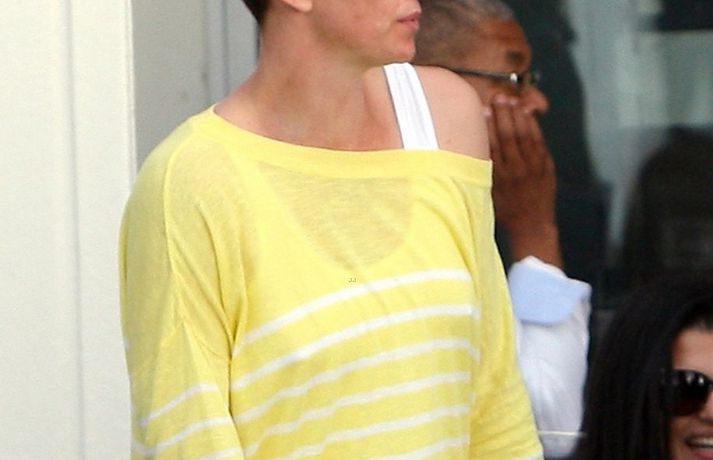 Leikkonan Charlize Theron, 37 ára, var mynduð á kaffihúsi með sólgleraugu á nefinu og krúnurakað hárið sem fer henni þetta líka svona vel. Leikkonan er upptekin við tökur á kvikmyndinni Mad Max: Fury Road - sem er ástæðan fyrir hárgreiðslunni.