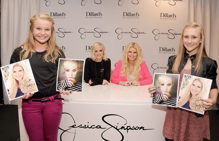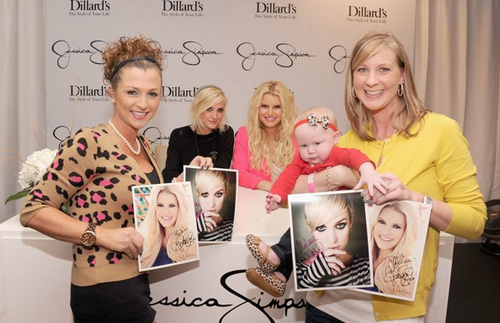 Jessica og Ashlee Simpson sýndu nýja fatalínu í Flórída um helgina við mikinn fögnuð aðdáenda. Á meðfylgjandi myndum má sjá systurnar, brot af línunni og æsta ljósmyndara sem voru viðstaddir frumsýninguna. Smelltu á myndina til að skoða.Brot úr línu systranna.