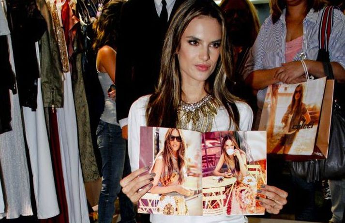 Brasilíska ofurfyrirsætan Alessandra Ambrosio er nú í heimalandi sínu til að kynna fatalínuna Colcci. Alessandra mætti í verslun í Rio de Janeiro í afar stuttum stuttbuxum í kúrekastíl. Hún brosti breitt og virtist skemmta sér vel með samlöndum sínum. Það virðast ekki vera lát á vinsældum fyrirsætunnar. Hún hlaut þann heiður að klæðast Fantasy-brjóstahaldaranum fræga á tískusýningu Victoria's Secret fyrir stuttu. Brjóstahaldarinn er ekkert slor og kostar 2,5 milljónir dollara, rúmlega þrjú hundruð milljónir króna.