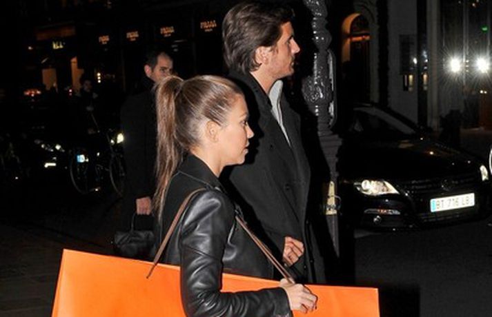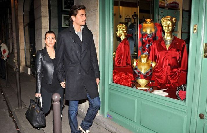 Raunveruleikastjörnurnar Kourtney Kardashian og Scott Disick eru stödd í París þessa dagana en þar voru þau mynduð í bak og fyrir á meðan þau röltu á milli búða að versluðu hressilega. Á meðfylgjandi myndum má sjá Kourtney með risa stóran poka úr versluninni Hermes Store. Hvað ætli leynist í pokanum stóra?Hvað ætli leynist í pokanum?